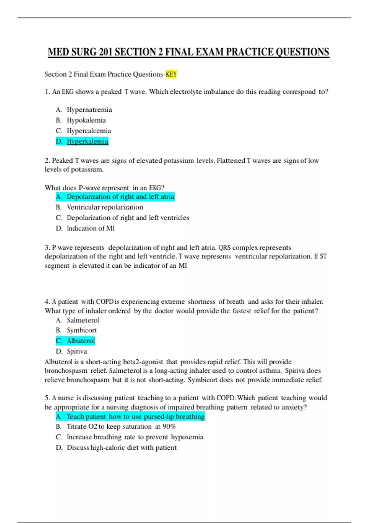 MED SURG 201 Section 2 Final Exam Practice Questions 2022.2023