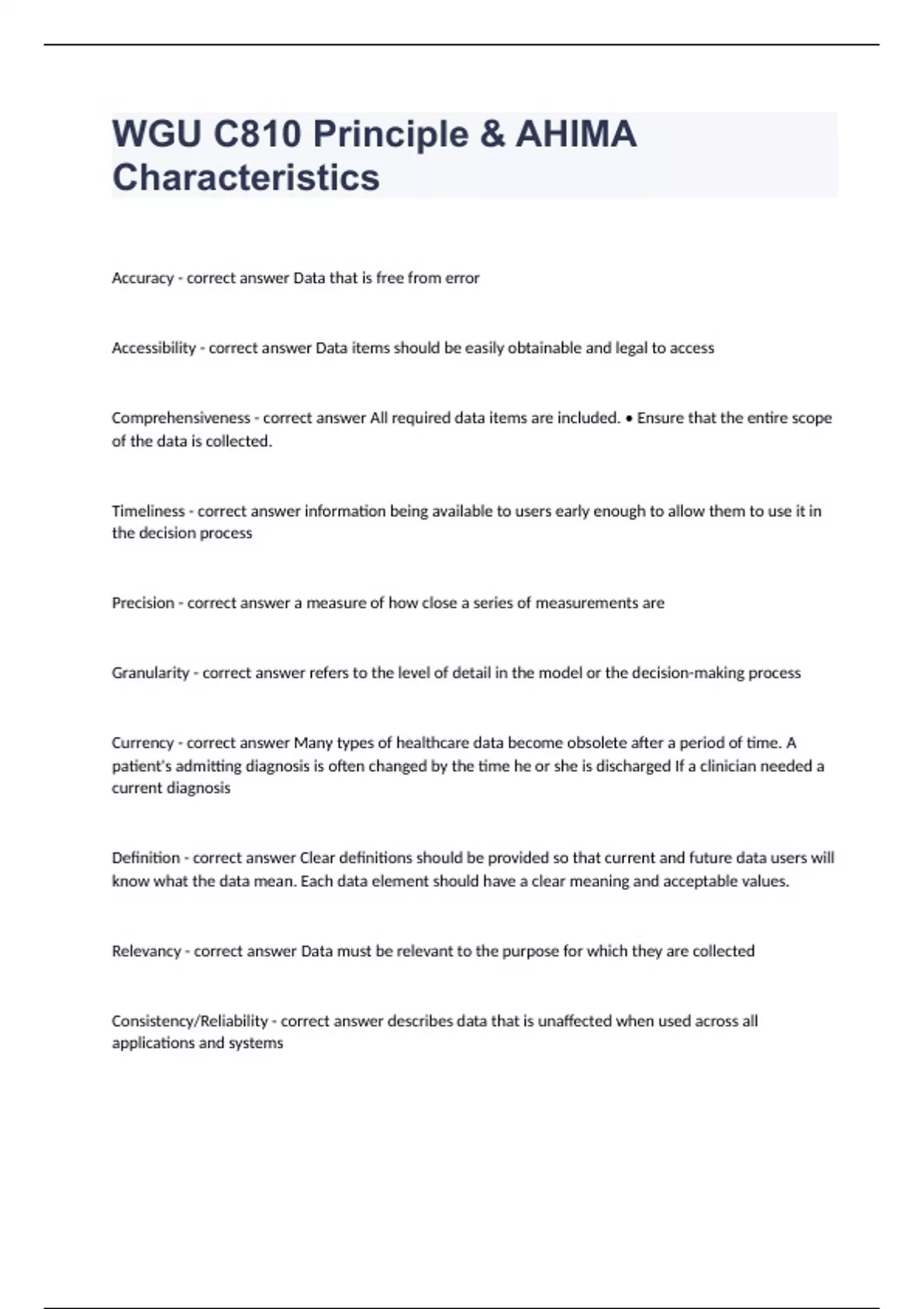 WGU C810 Principle & AHIMA Characteristics question n answers graded A+