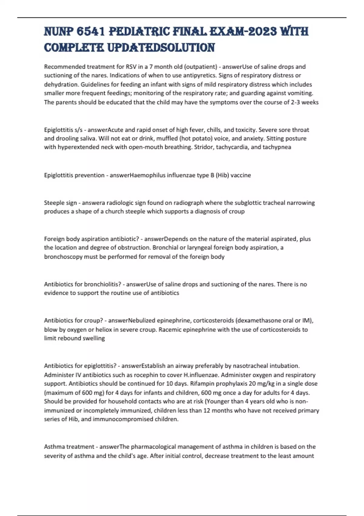 NUNP 6541 Pediatric Final Exam-2023 with complete updatedsolution