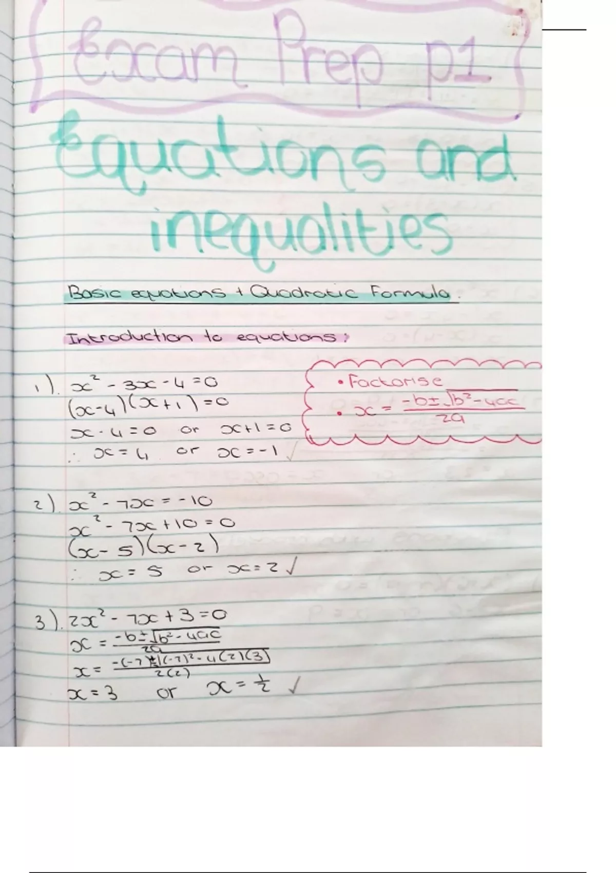 Handwritten notes on grade 11 Equations and Inequalities, which contains colourful and a easy to understand guide on all the information you need with practice questions. Math made easy just for you.