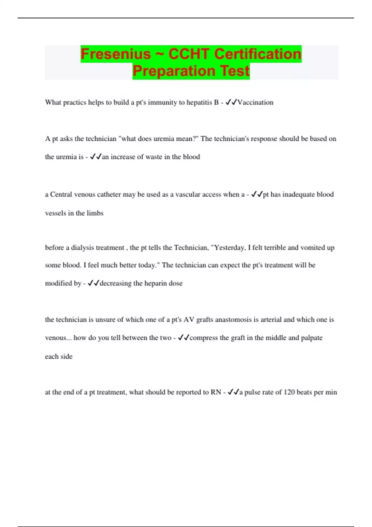 Fresenius ~ CCHT Certification Preparation Test | Questions with 100% Correct Answers | Latest Update 2024 | Verified