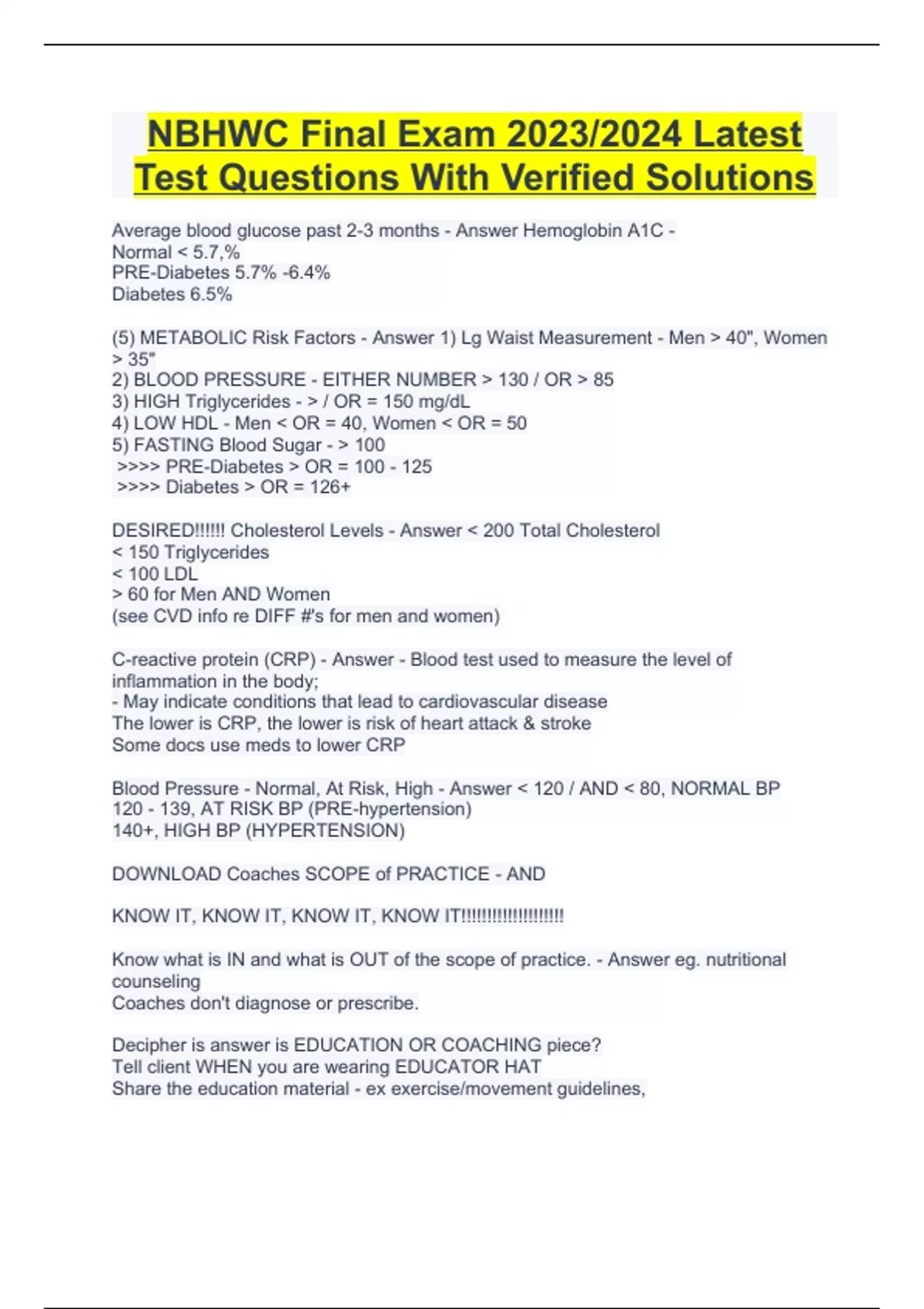 NBHWC Final Exam 2023/2024 Latest Test Questions With Verified Solutions