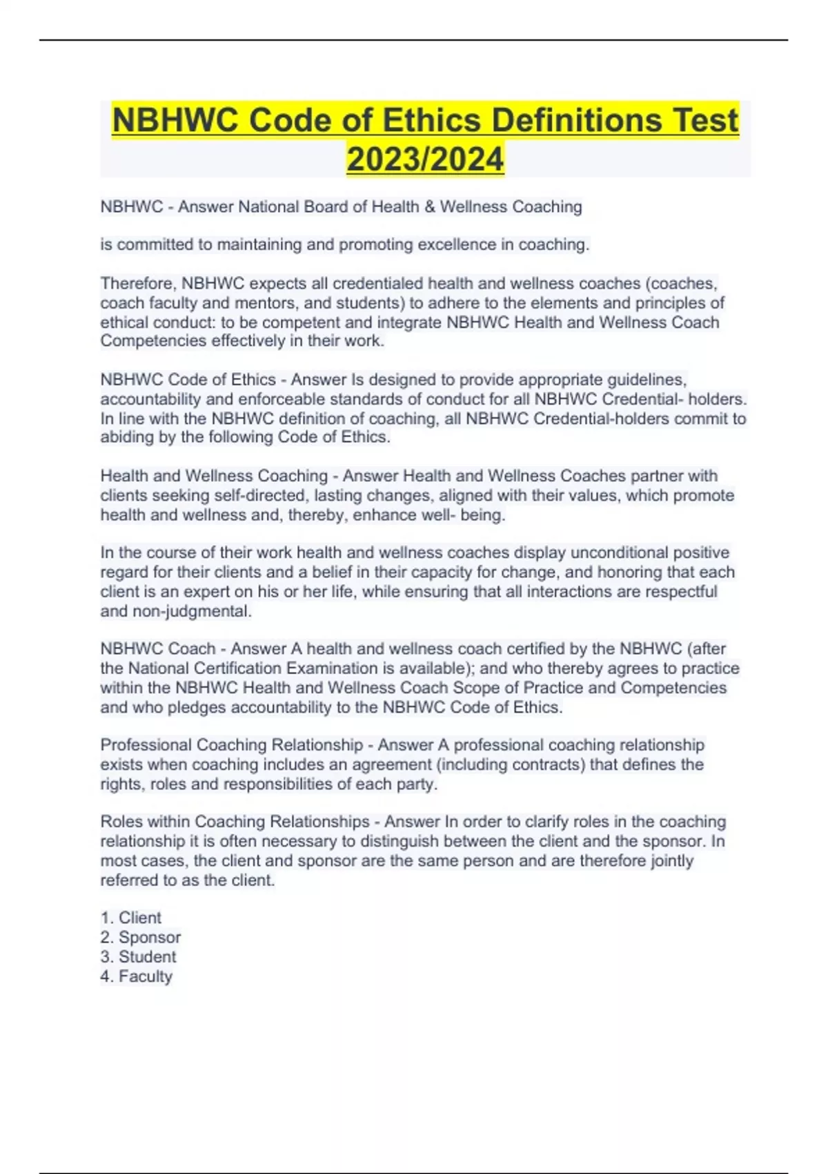 NBHWC Code of Ethics Definitions Test 2023/2024