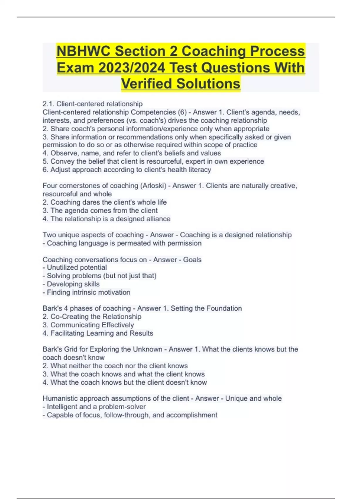 NBHWC Section 2 Coaching Process Exam 2023/2024 Test Questions With Verified Solutions