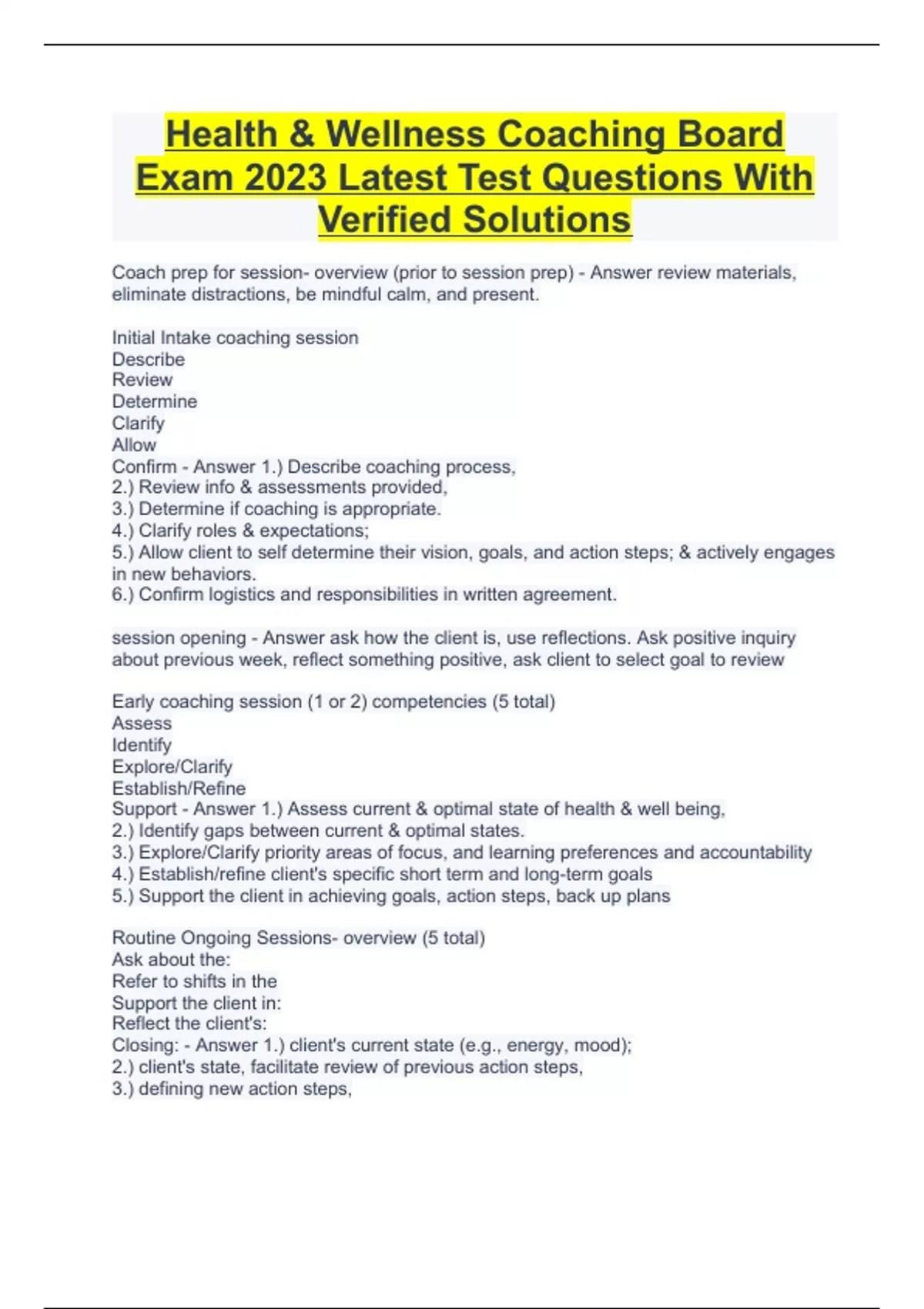 Health & Wellness Coaching Board Exam 2023 Latest Test Questions With Verified Solutions