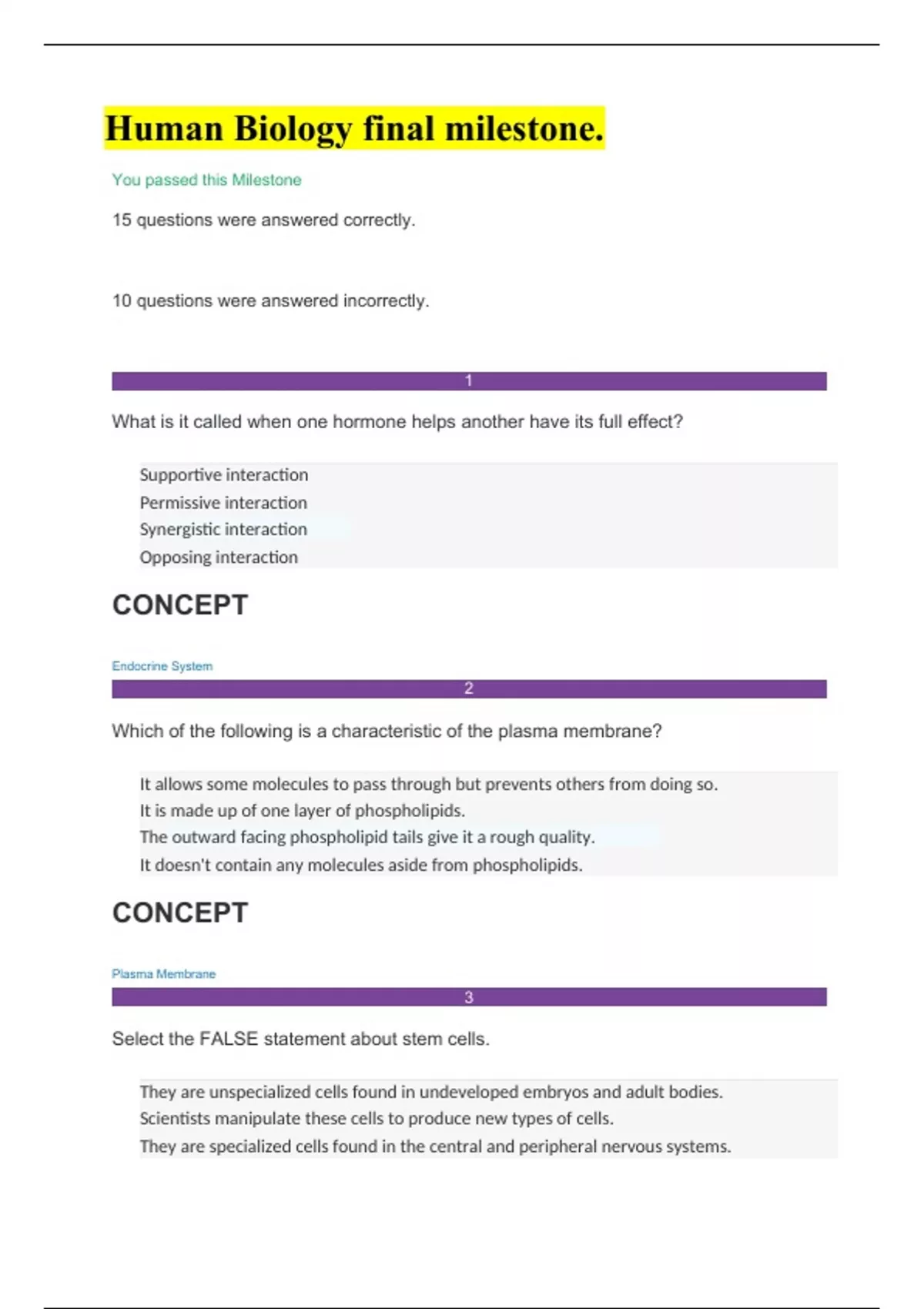 Human Biology final verified questions and ansswers What is it called when one hormone helps another have its full effect?