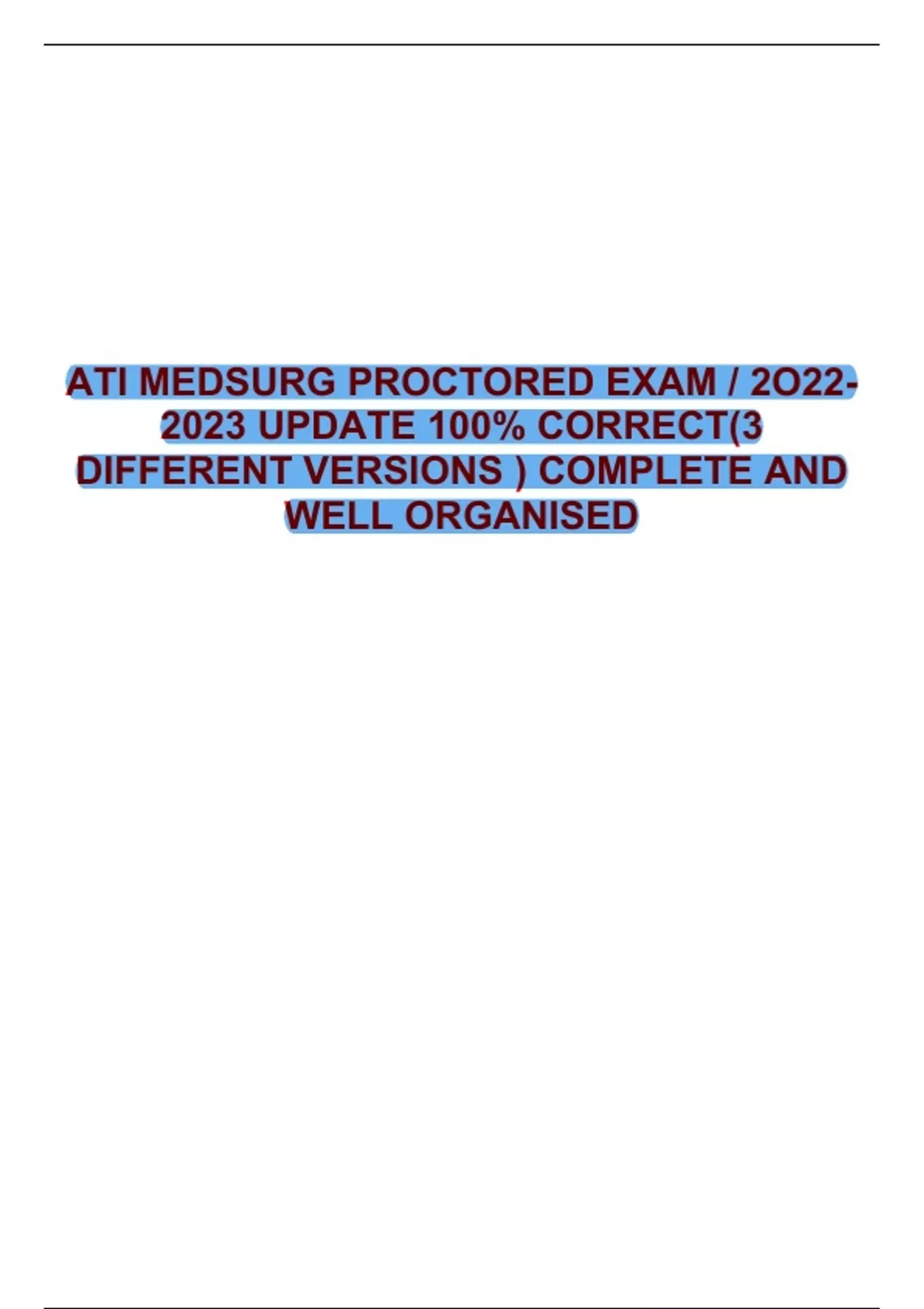 Summary ATI MEDSURG PROCTORED EXAM / 2O22- 2023