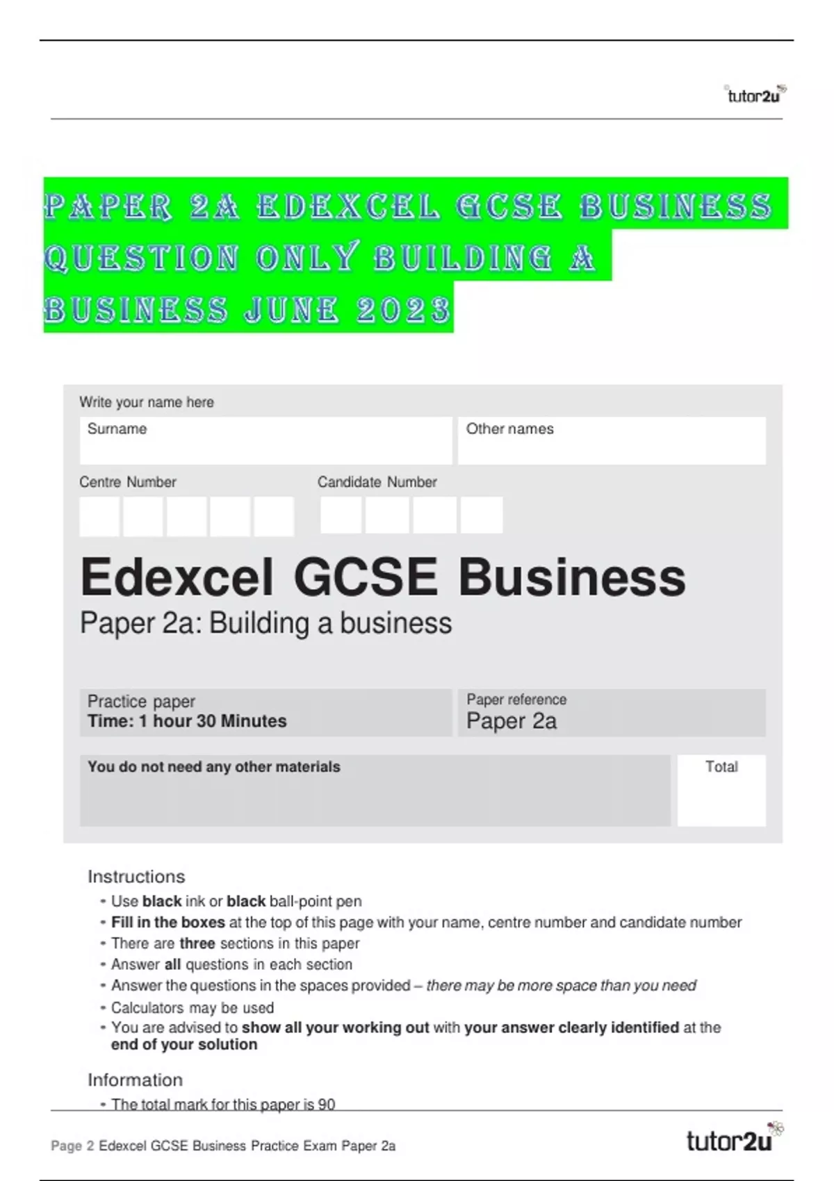 - PAPER 2A EDEXCEL GCSE BUSINESS JUNE 2023