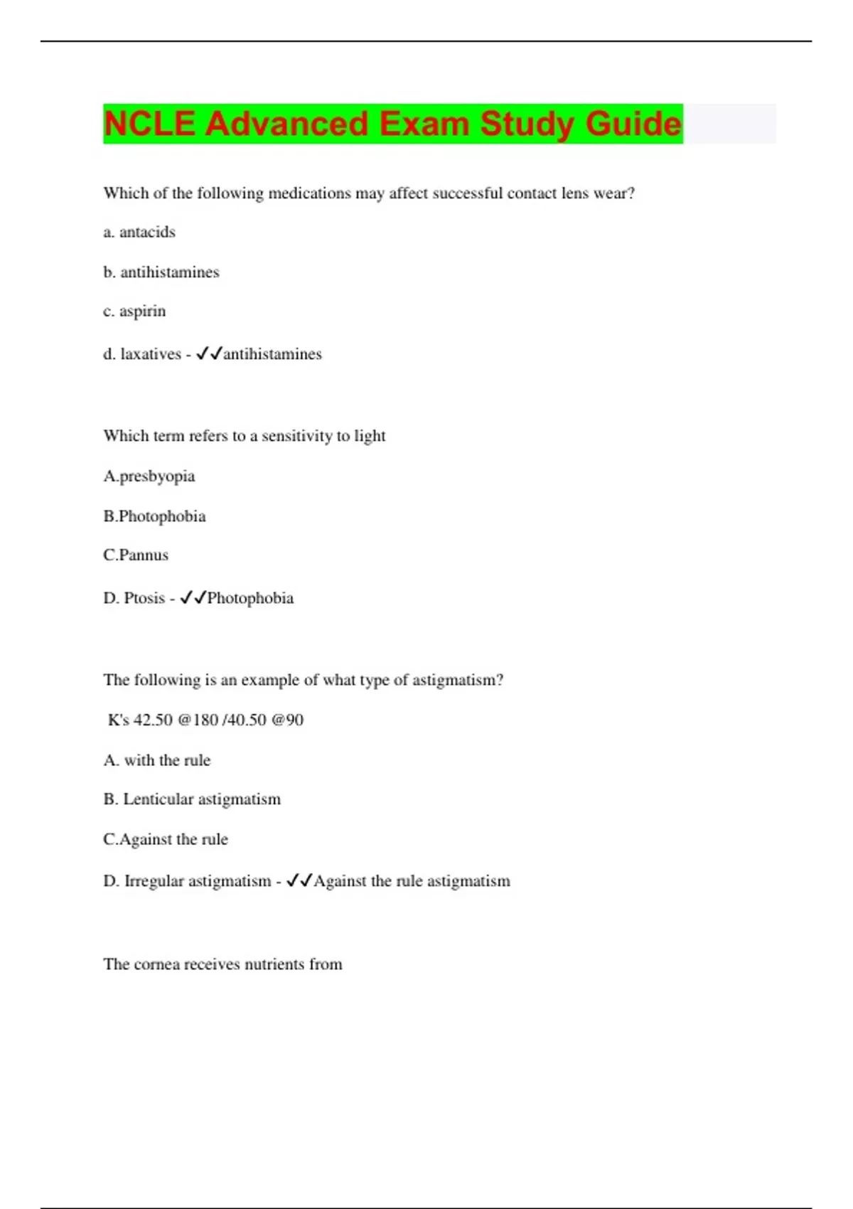 NCLE Advanced Exam Study Guide | Questions with 100% Correct Answers | Latest Update 2024 | Verified