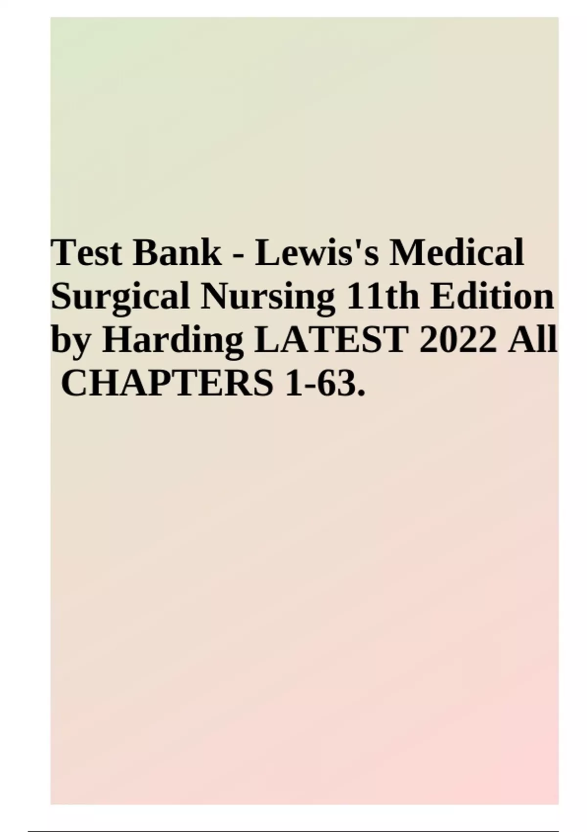 TEST BANK FOR LEWIS’S MEDICAL SURGICAL NURSING 11TH EDITION HARDING CHAPTER 1-68|COMPLETE GUIDE-2022