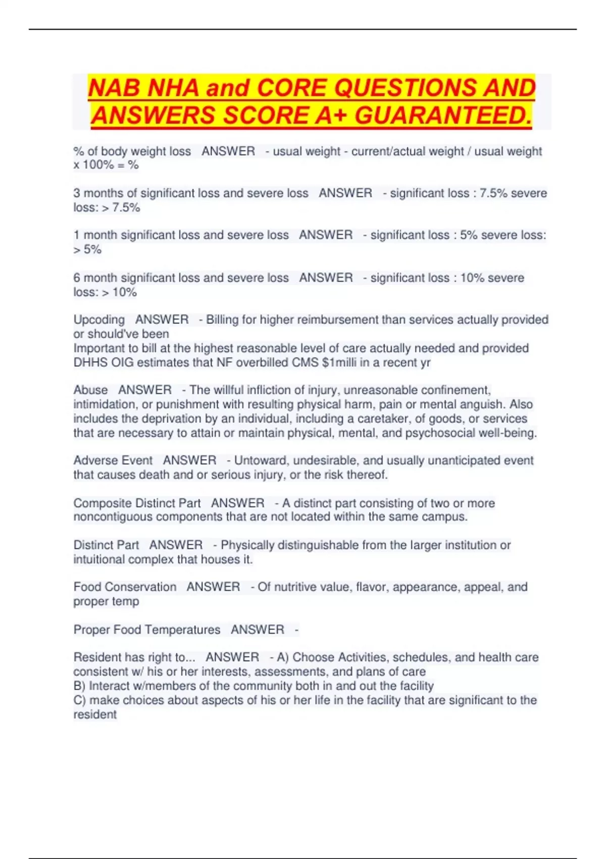 NAB NHA and CORE QUESTIONS AND ANSWERS SCORE A+ GUARANTEED. NAB NHA and CORE QUESTIONS AND ANSWERS SCORE A+ GUARANTEED. NAB NHA and CORE QUESTIONS AND ANSWERS SCORE A+ GUARANTEED. NAB NHA and CORE QUESTIONS AND ANSWERS SCORE A+ GUARANTEED. NAB NHA and CORE QUESTIONS AND ANSWERS SCORE A+ GUARANTEED. NAB NHA and CORE QUESTIONS AND ANSWERS SCORE A+ GUARANTEED. NAB NHA and CORE QUESTIONS AND ANSWERS SCORE A+ GUARANTEED. NAB NHA and CORE QUESTIONS AND ANSWERS SCORE A+ GUARANTEED. NAB NHA and CORE QUESTIONS AND ANSWERS SCORE A+ GUARANTEED. NAB NHA and CORE QUESTIONS AND ANSWERS SCORE A+ GUARANTEED. NAB NHA and CORE QUESTIONS AND ANSWERS SCORE A+ GUARANTEED. NAB NHA and CORE QUESTIONS AND ANSWERS SCORE A+ GUARANTEED. NAB NHA and CORE QUESTIONS AND ANSWERS SCORE A+ GUARANTEED. NAB NHA and CORE QUESTIONS AND ANSWERS SCORE A+ GUARANTEED. NAB NHA and CORE QUESTIONS AND ANSWERS SCORE A+ GUARANTEED. NAB NHA and CORE QUESTIONS AND ANSWERS SCORE A+ GUARANTEED. NAB NHA and CORE QUESTIONS AND ANSWERS SCORE A+ GUARANTEED. NAB NHA and CORE QUESTIONS AND ANSWERS SCORE A+ GUARANTEED. NAB NHA and CORE QUESTIONS AND ANSWERS SCORE A+ GUARANTEED.