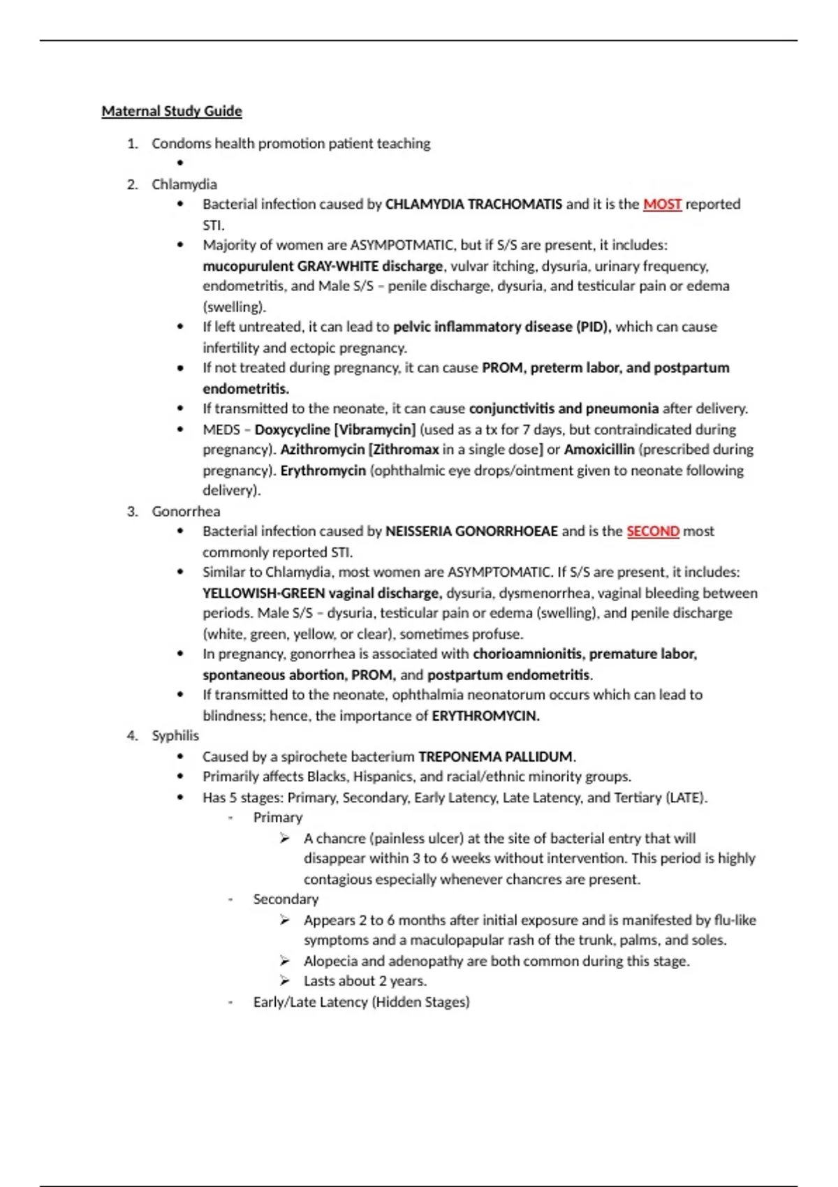 NURS 2111 OB and Peds Final Exam Study Guide- Albany State University