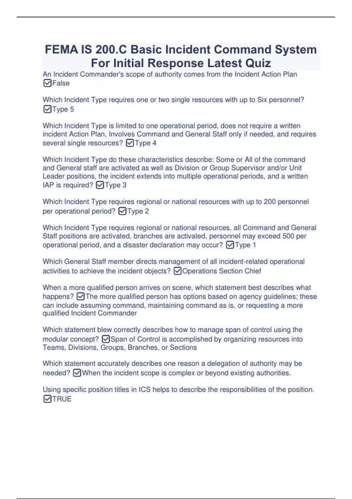FEMA IS 200.C Basic Incident Command System For Initial Response Latest Quiz FEMA IS 200.C Basic Incident Command System For Initial Response Latest Quiz