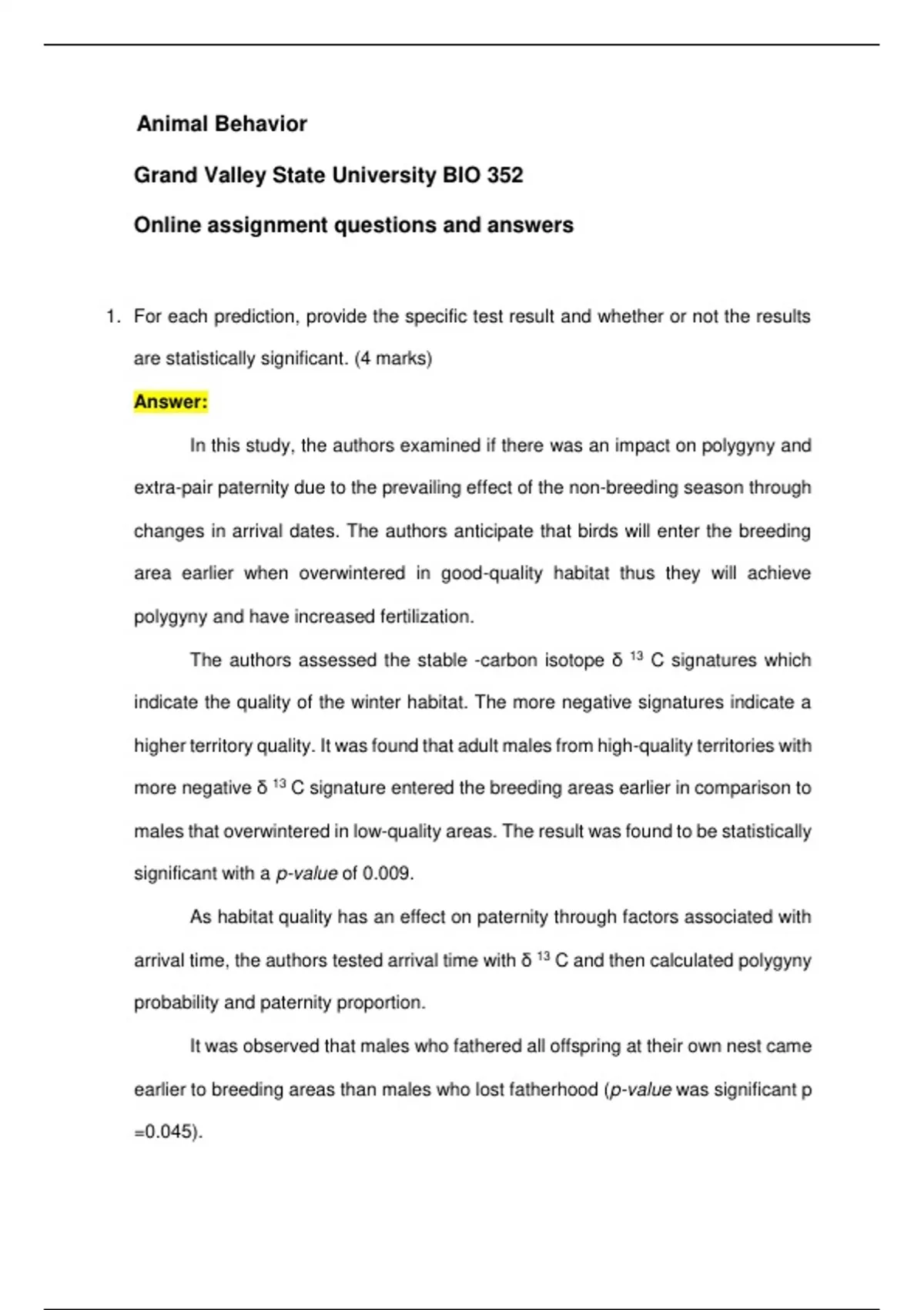 Online assignment for BIO 352 - Animal Behavior 2023/2024