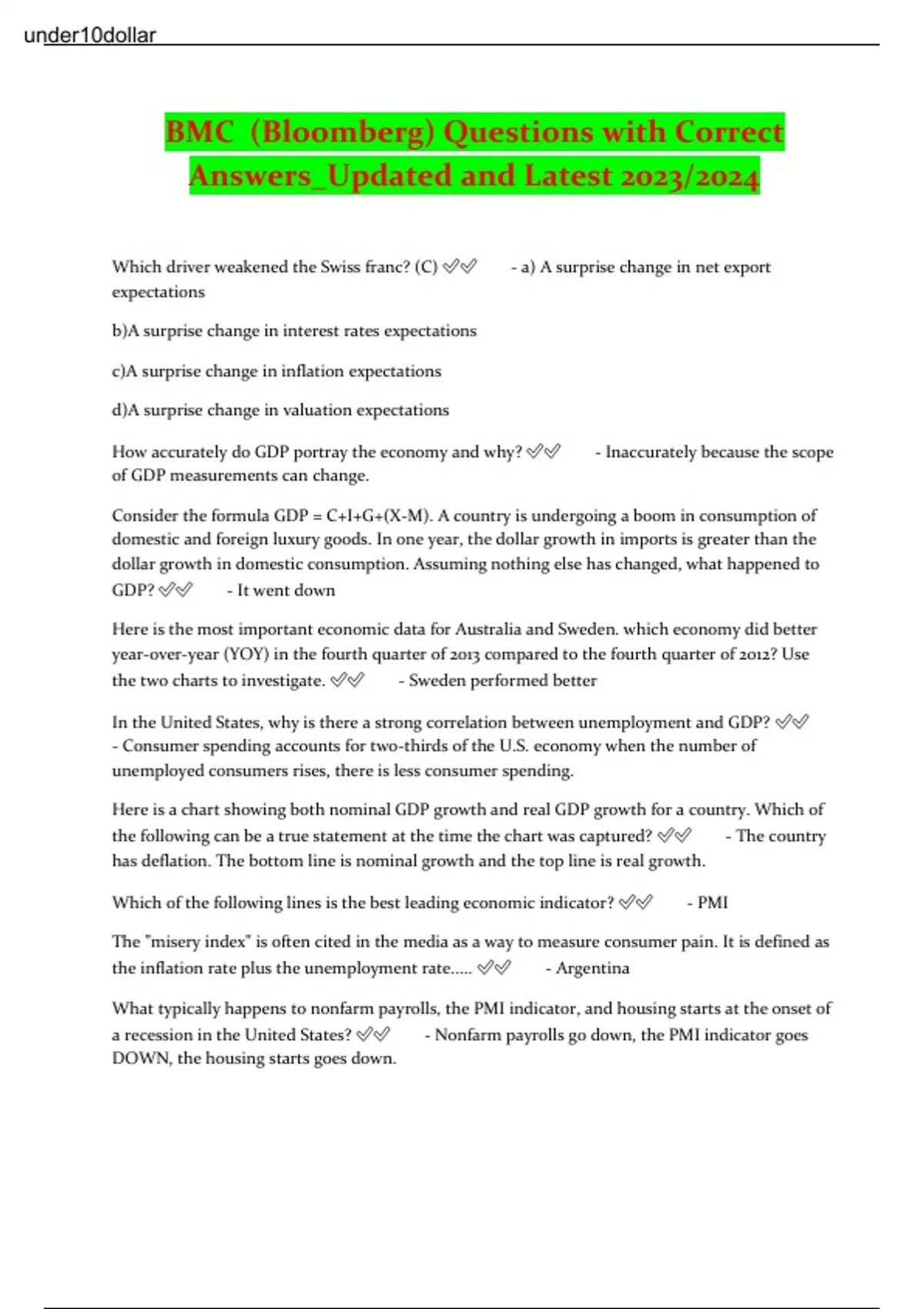 BMC (Bloomberg) Questions with Correct Answers_Updated and Latest 2023/2024