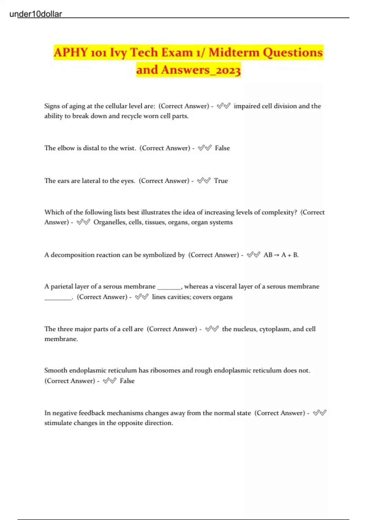 APHY 101 Ivy Tech Exam 1/ Midterm Questions and Answers_2023