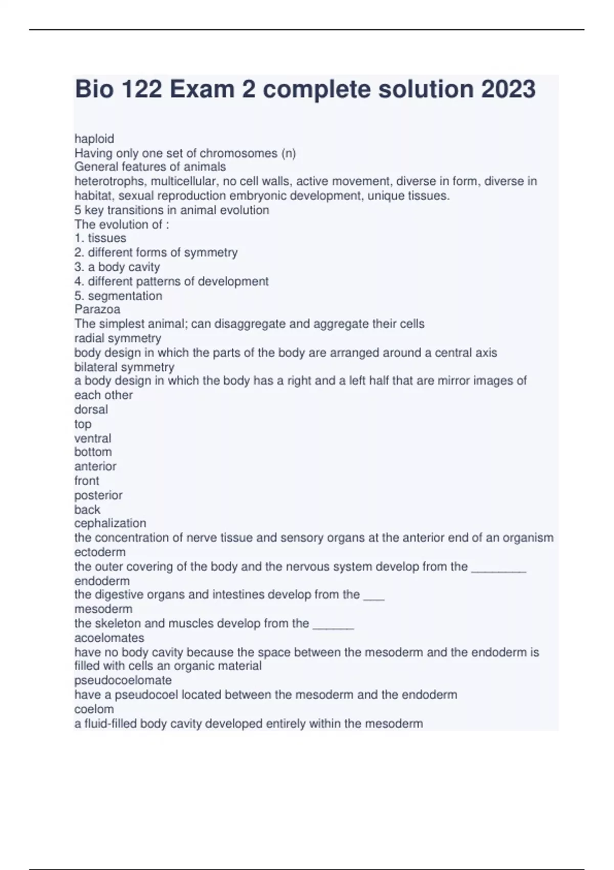 bio 122 exam 2 complete solution 2023
