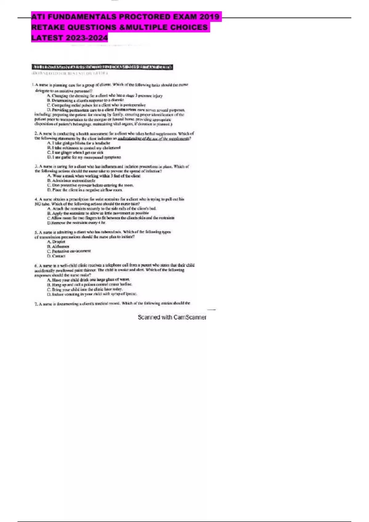 ATI FUNDAMENTALS PROCTORED EXAM 2019 RETAKE QUESTIONS &MULTIPLE CHOICES LATEST