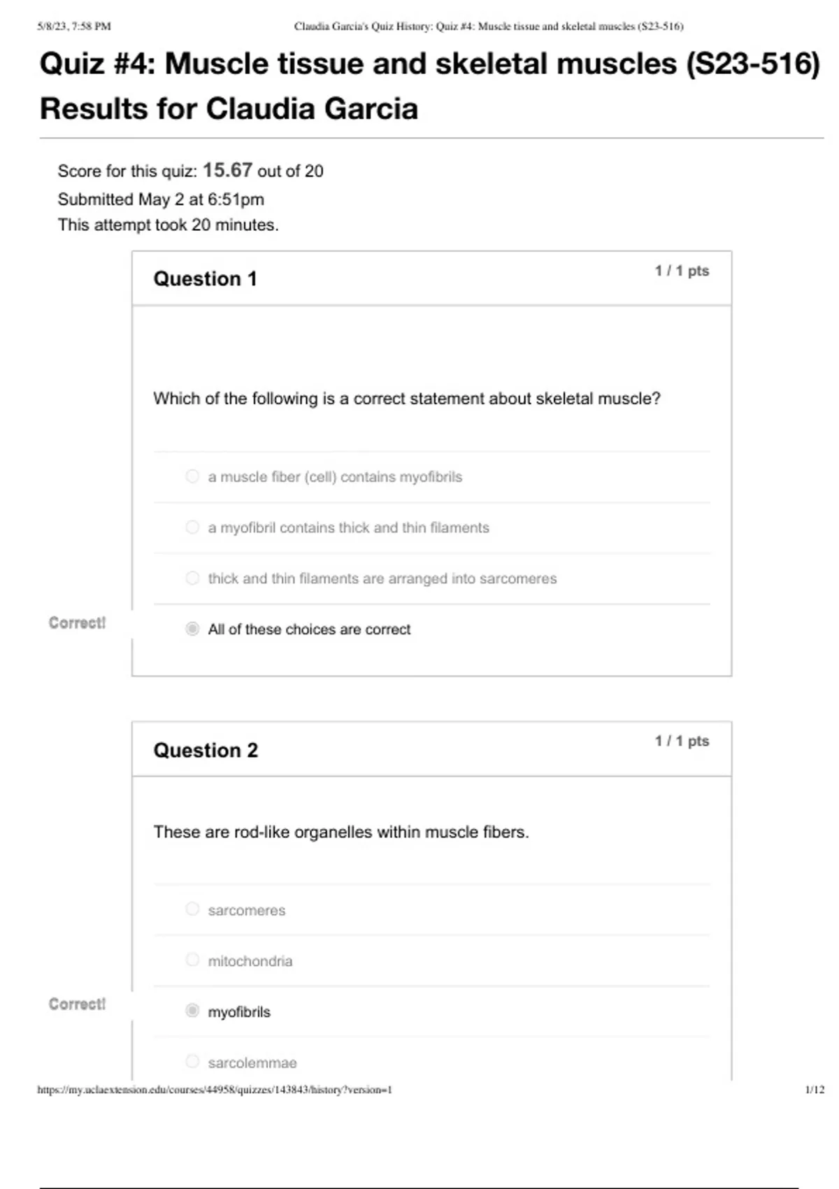 Practice quiz for Human anatomy on muscle tissue and skeletal muscle.