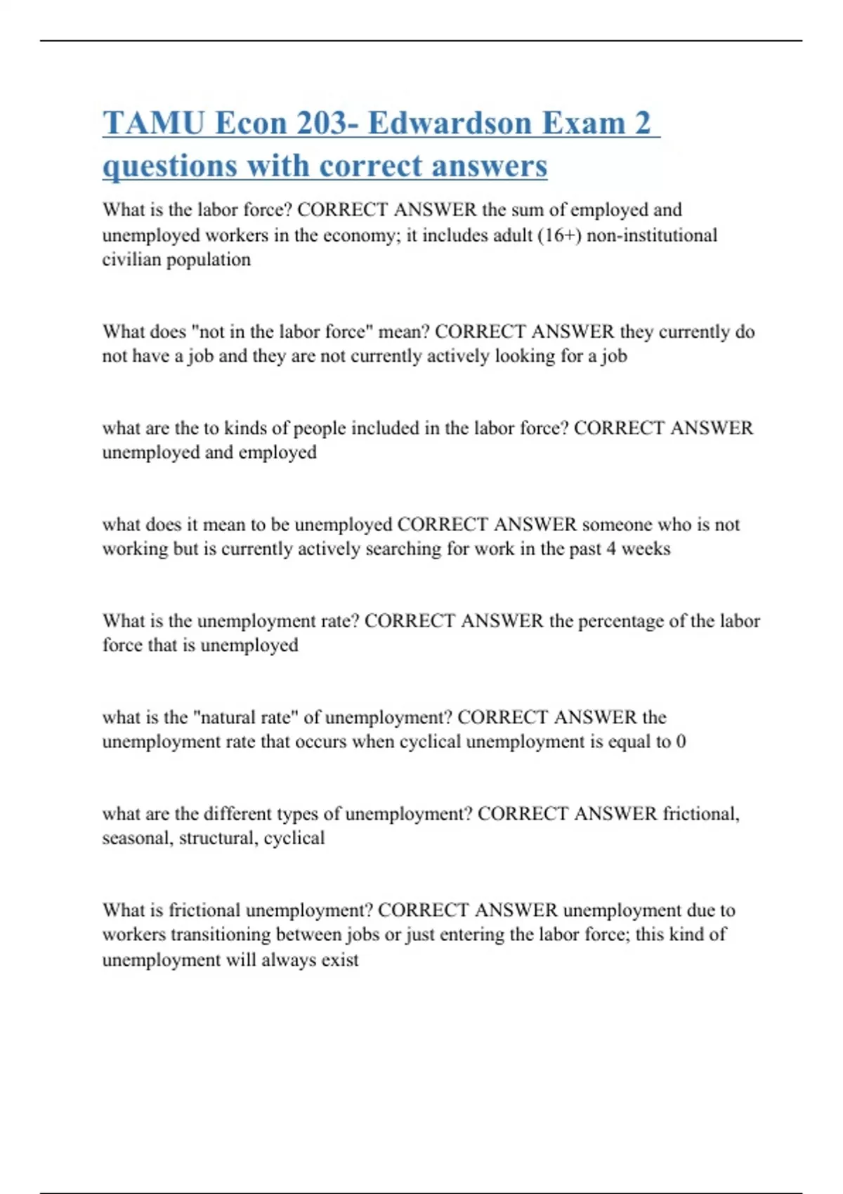 tamu econ 203 edwardson exam 2 questions with cor