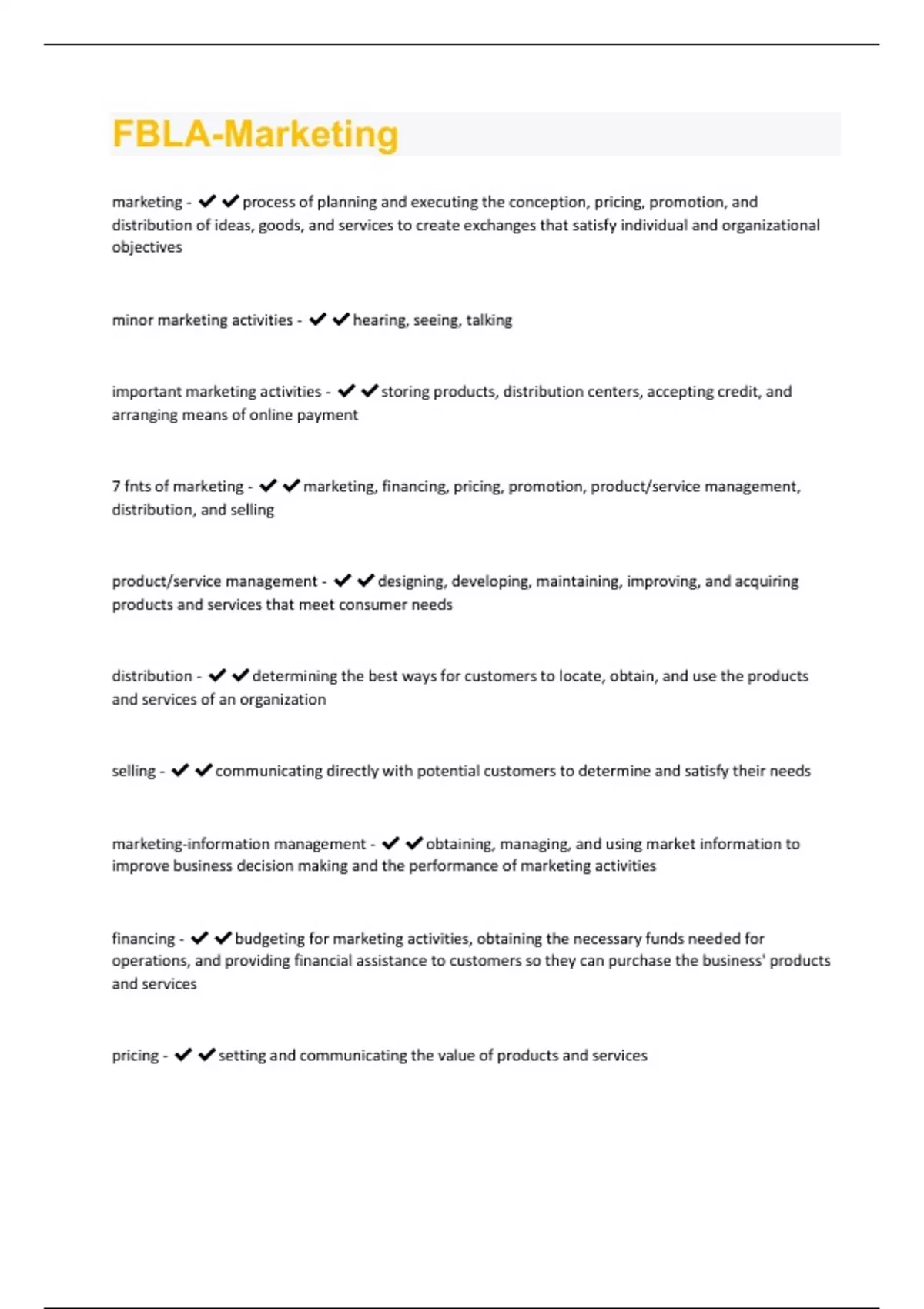 FBLA-Marketing Questions And Answers Already Graded A+