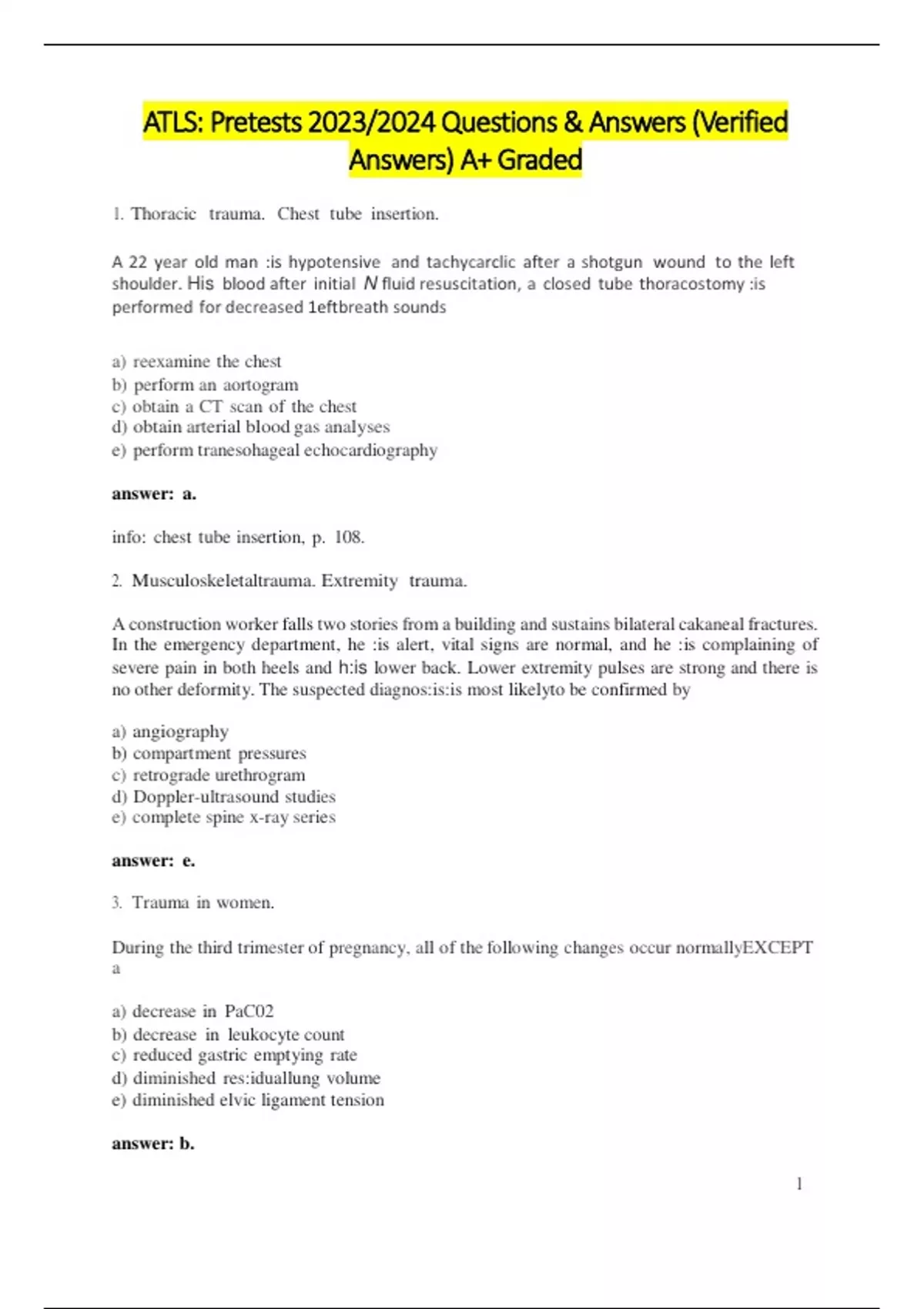 ATLS: Pretests 2023/2024 Questions & Answers (Verified Answers) A+ Graded