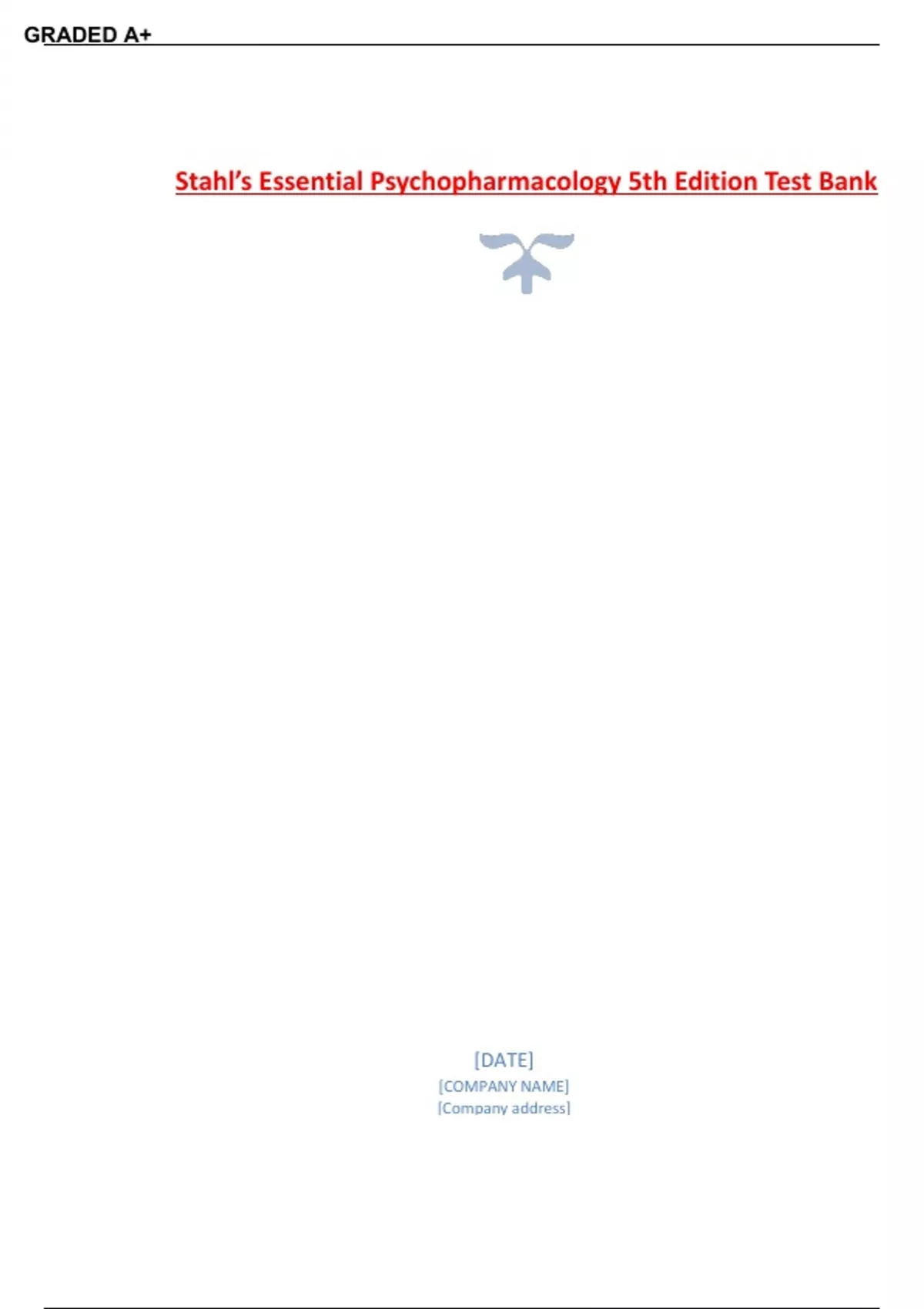 Stahl's Essential Psychopharmacology 5th Edition Chapter 1-14 Full Covered Test Bank.