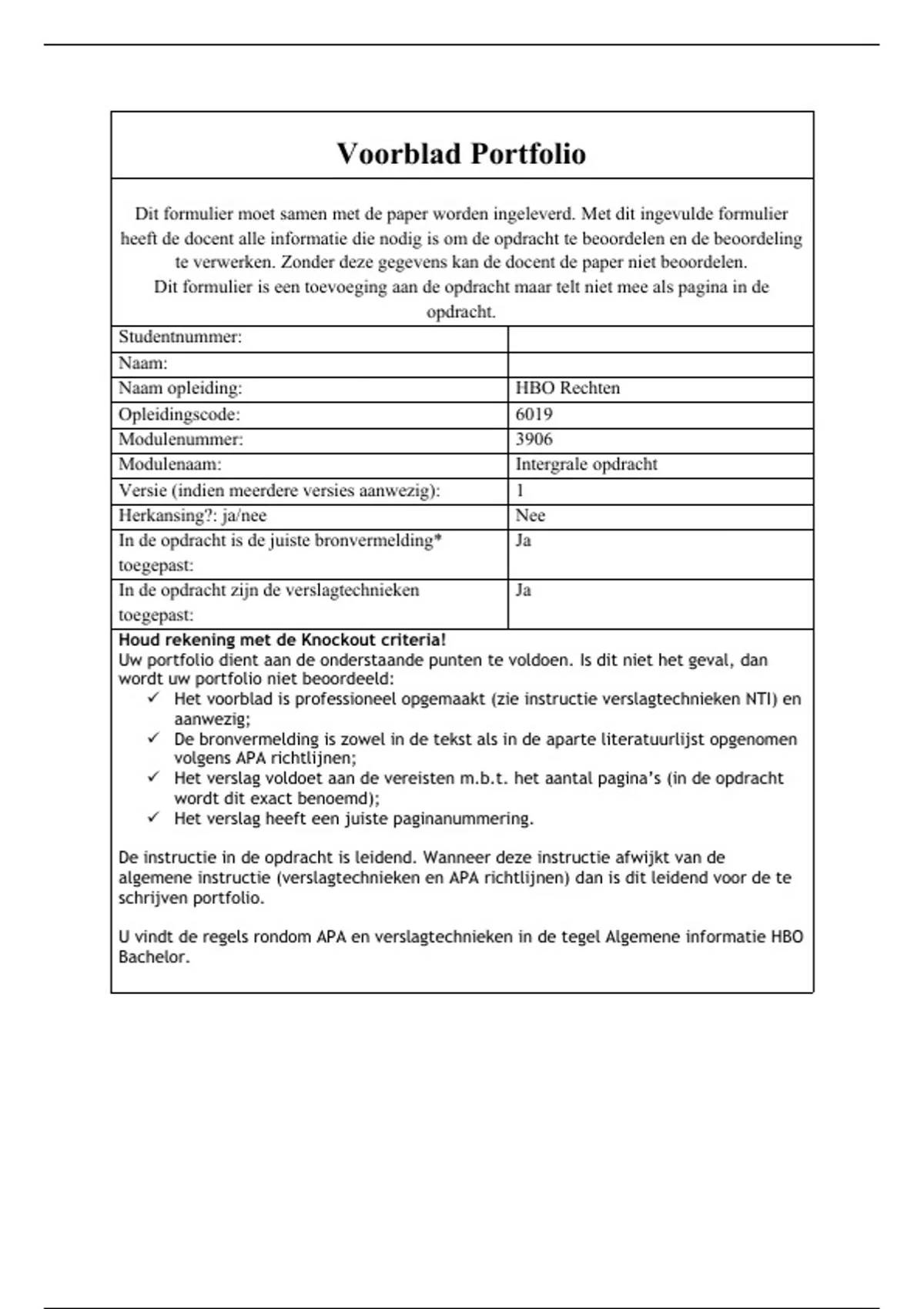 Dit formulier is een toevoeging aan de opdracht maar telt niet mee als pagina in de
