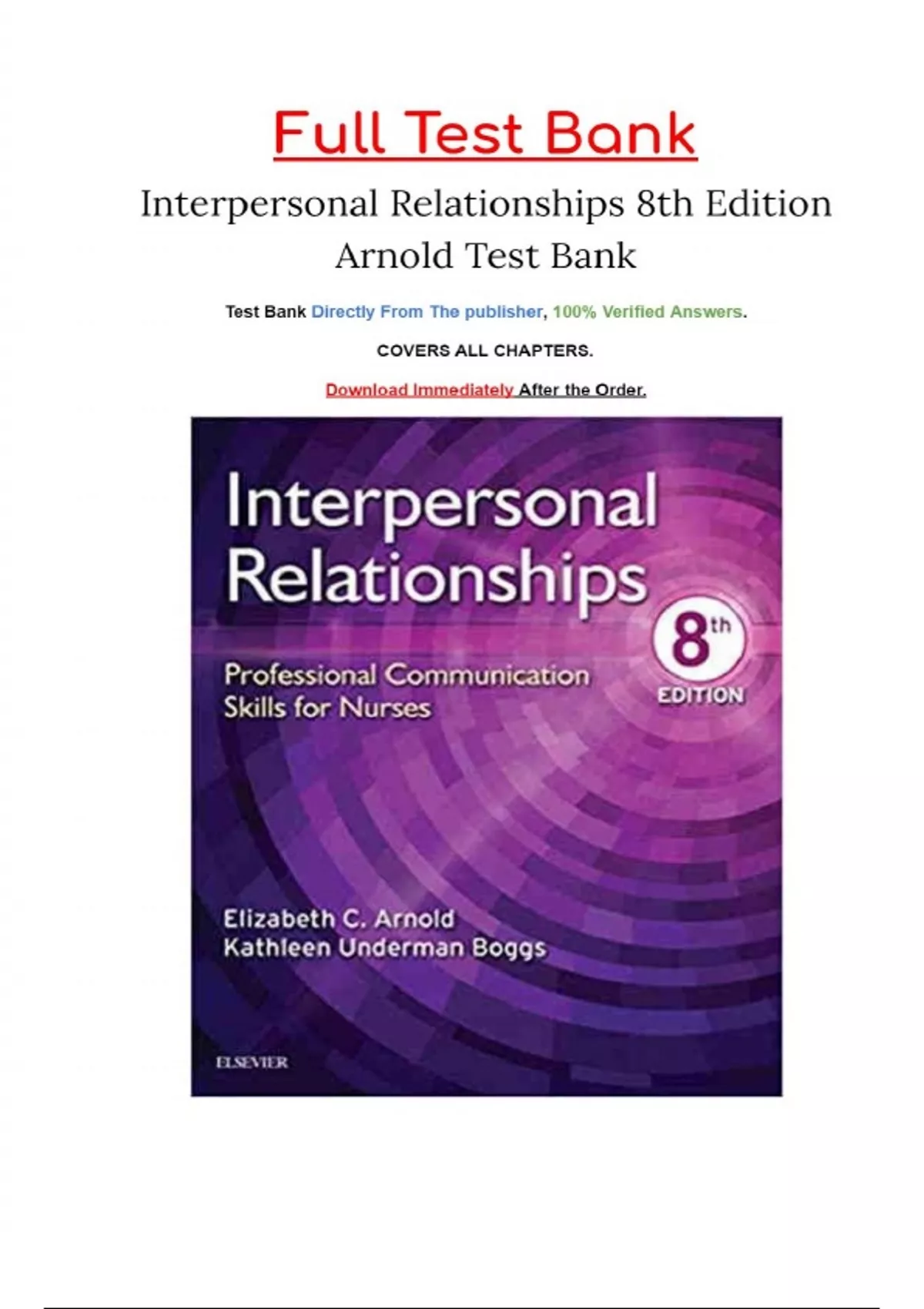 Test Bank For Interpersonal Relationships Professional Communication Skills for Nurses 8th Edition Arnold||ISBN NO:10,||ISBN NO:13,978-0323544801||All Chapters||Complete Guide A+