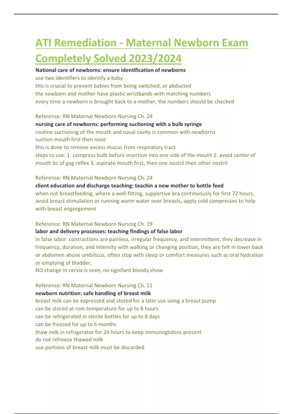 ATI remediation - Maternal Newborn Exam completely solved 2023/2024