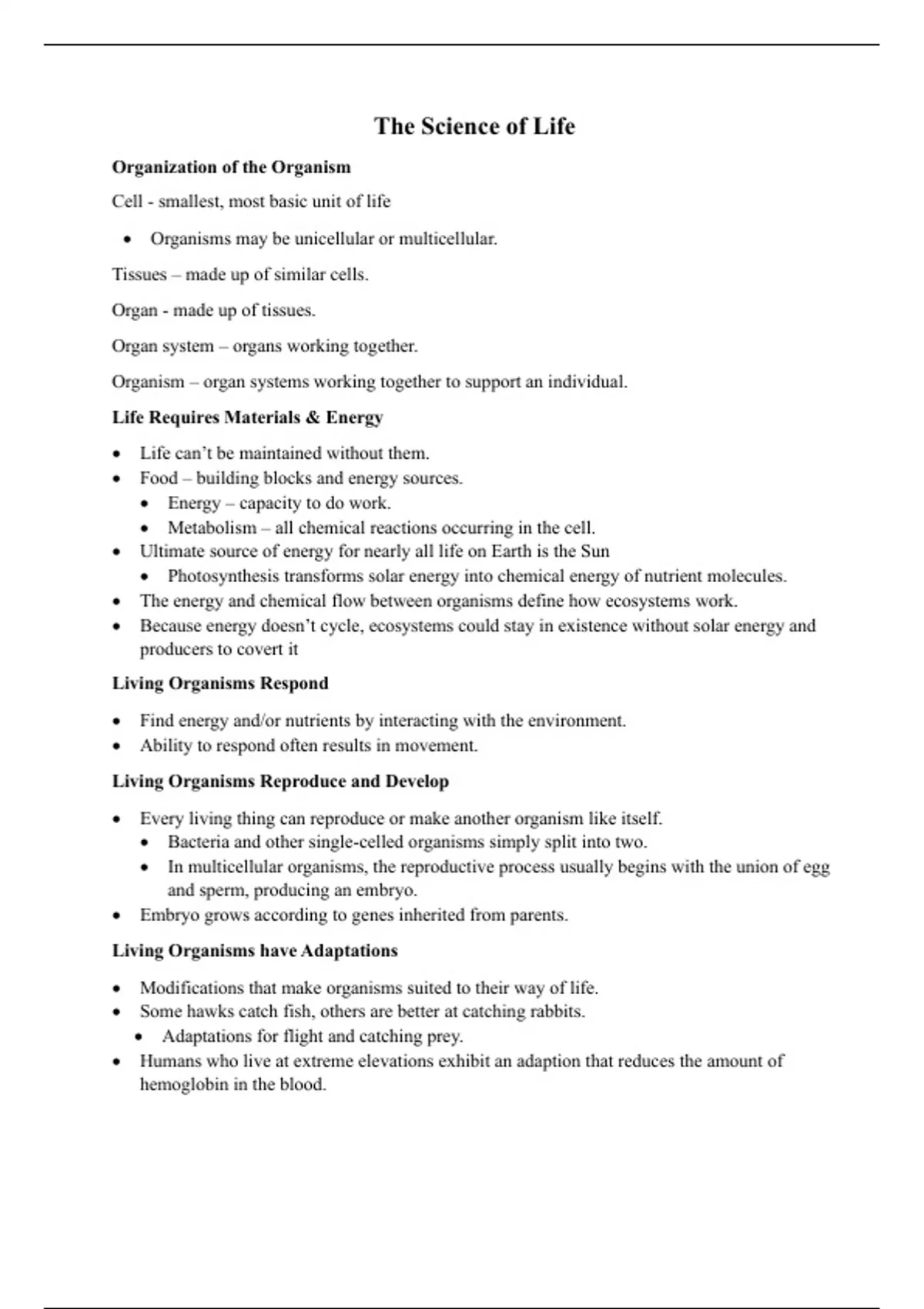 Chapter 1 : The Science of Life Basic Study Notes. Includes main topics and some vocabulary included in Chapter 1 of Essentials of Biology (6th edition)