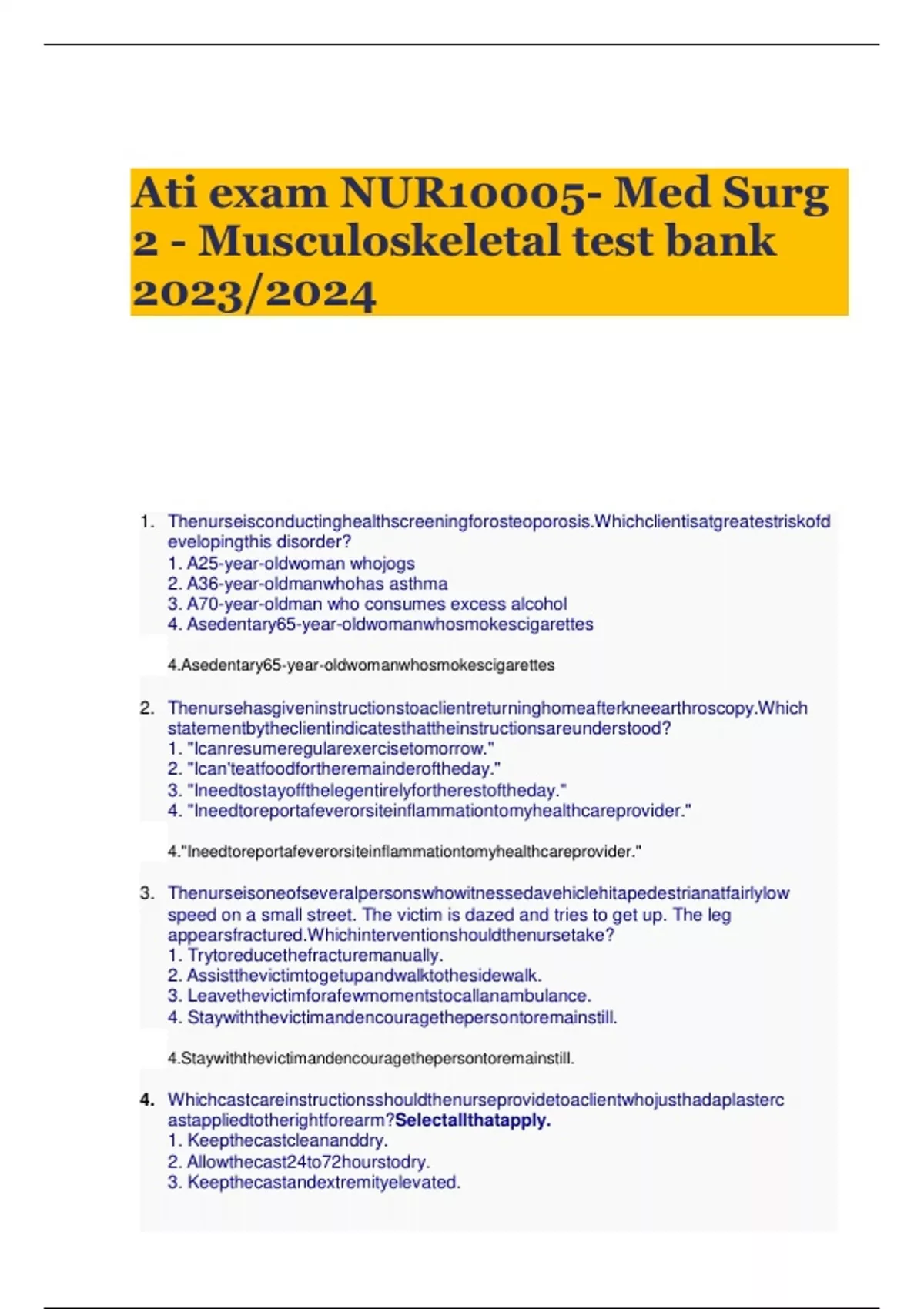 Ati exam NUR10005- Med Surg 2 - Musculoskeletal test bank 2023/2024