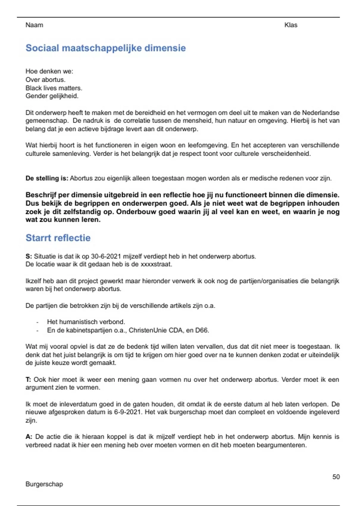 nieuwe afgesproken datum is 6-9-2021. Het vak burgerschap moet dan compleet en voldoende ingeleverd