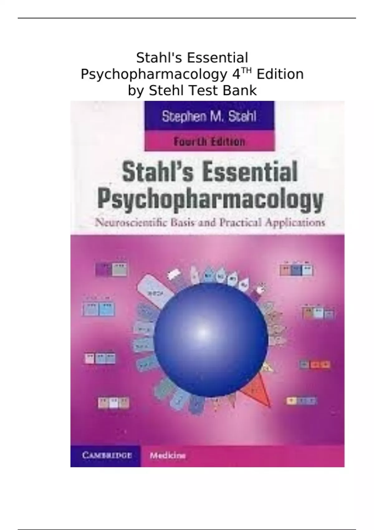 Stahl's Essential Psychopharmacology 4TH Ed by Stehl Test Bank - (RATED A+) Q&A EXPLAINED 2023 UPDATE