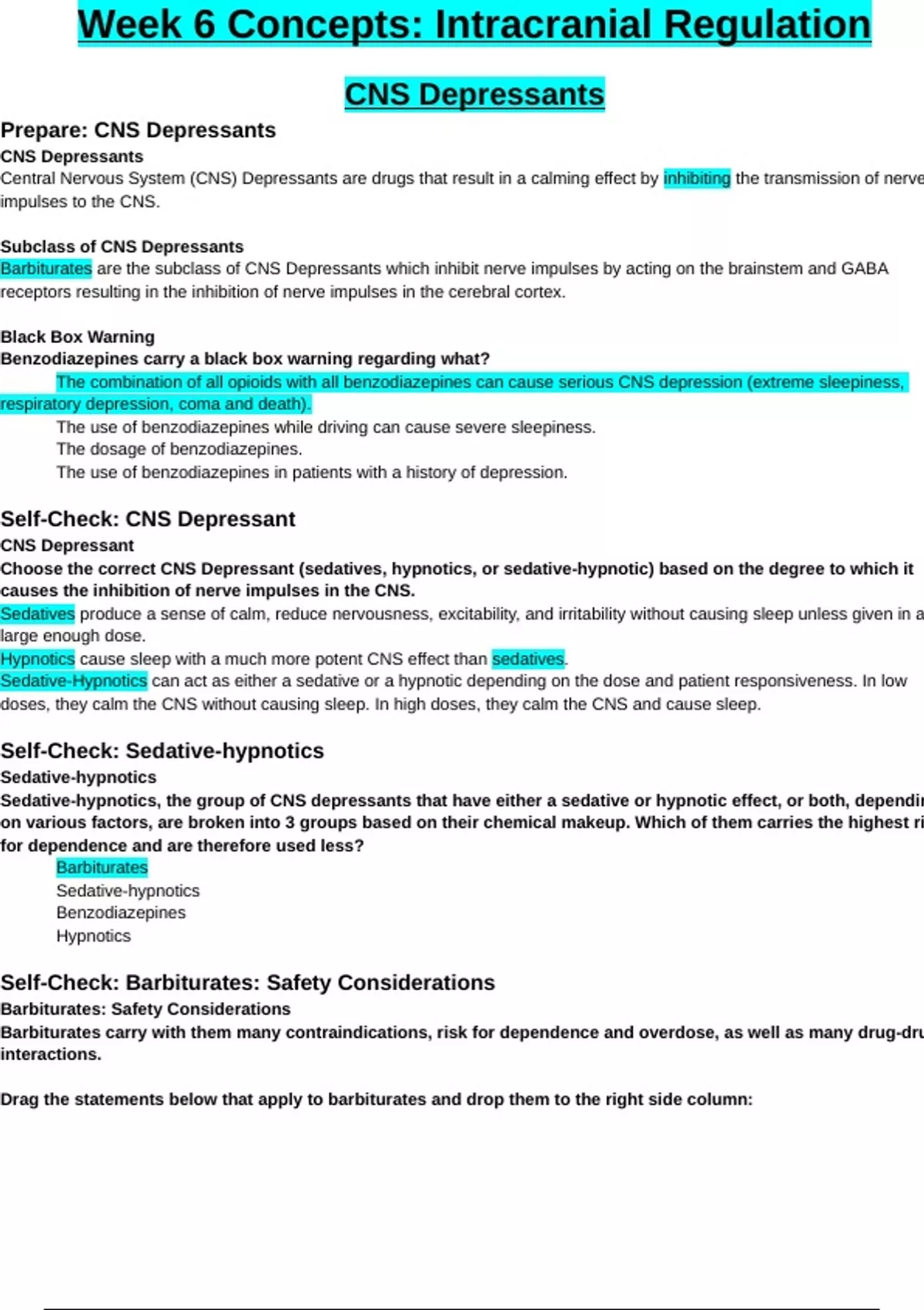 Self-Check: CNS Depressant