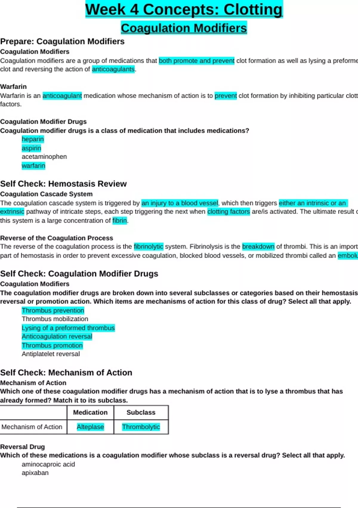 Coagulation modifiers are a group of medications that both promote and prevent clot formation as well as lysing a preforme