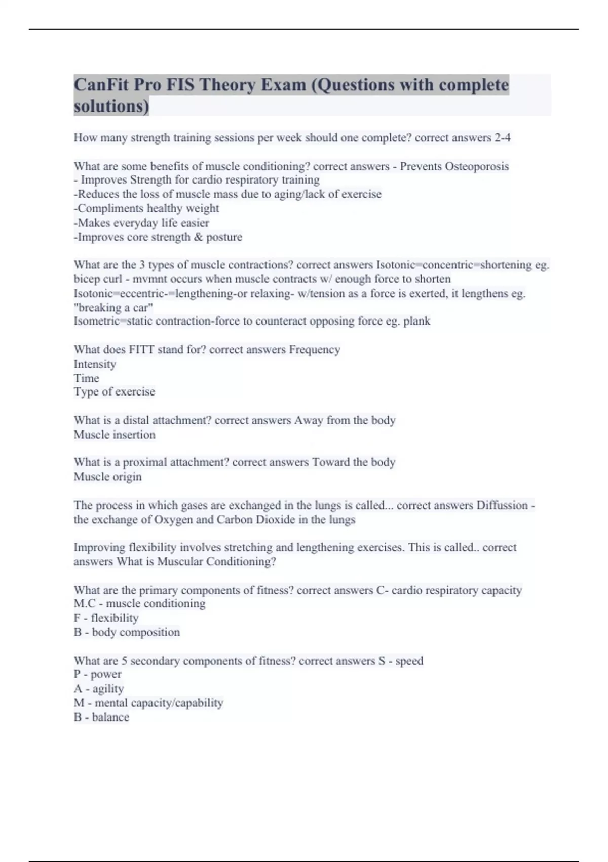 CanFit Pro FIS Theory Exam (Questions with complete solutions)