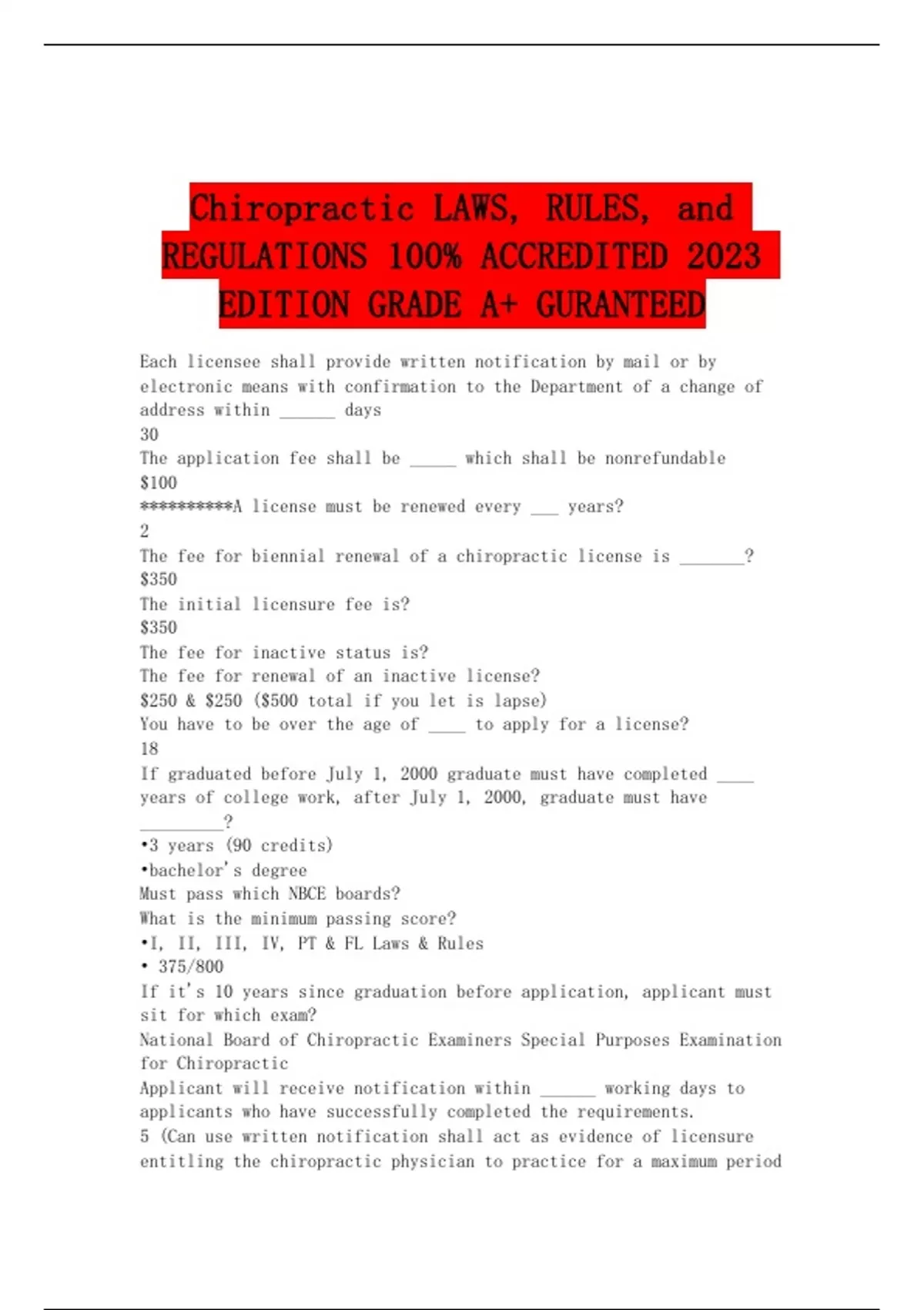 Chiropractic LAWS, RULES, and REGULATIONS 100% ACCREDITED 2023 EDITION GRADE A+ GURANTEED