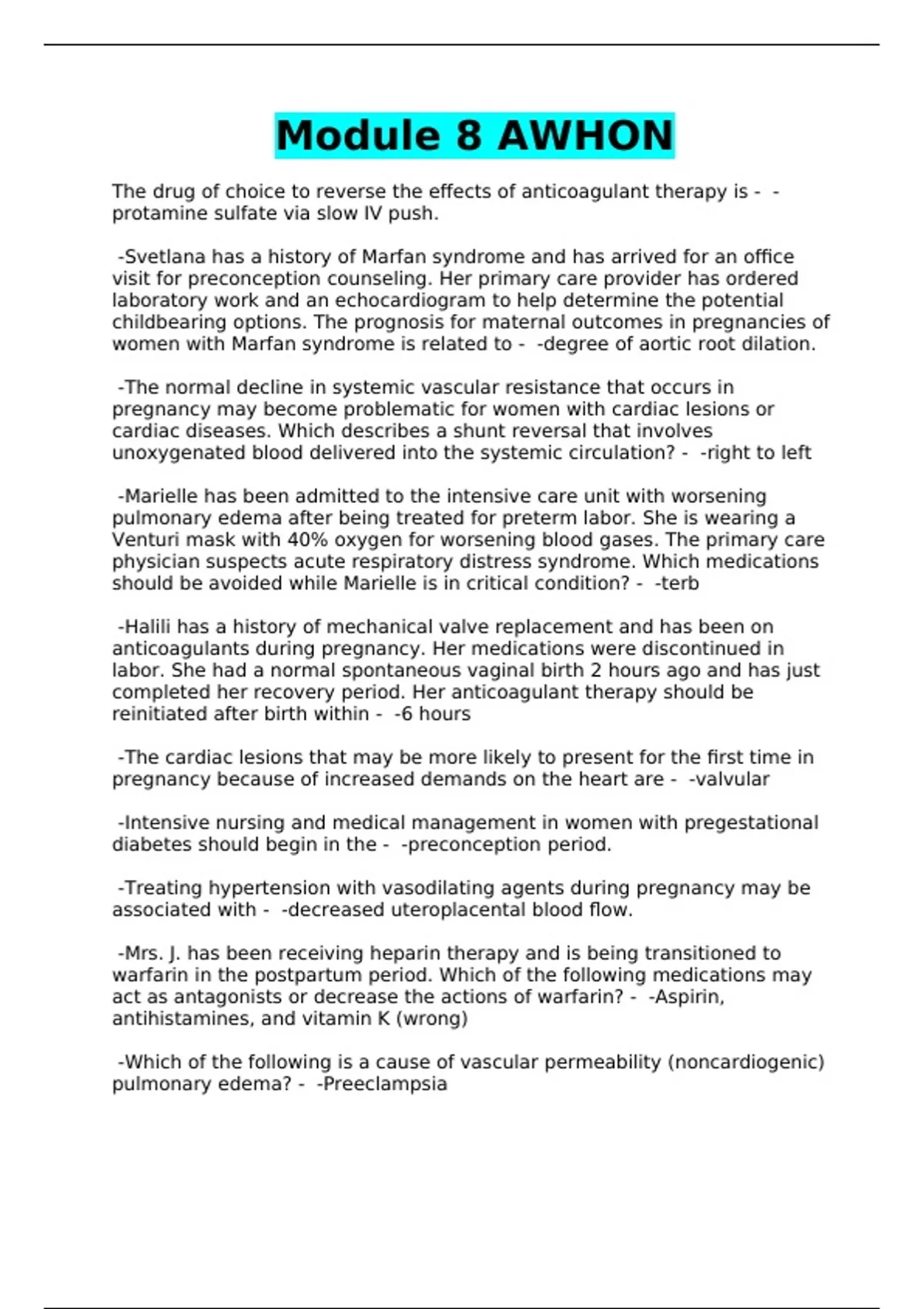 Exam of 3 pages for the course Module 8 AWHON at Module 8 AWHON (Module 8 AWHON)