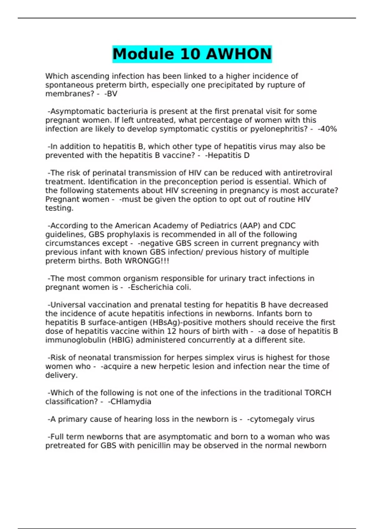 Exam of 2 pages for the course Module 10 AWHON at Module 10 AWHON (Module 10 AWHON)