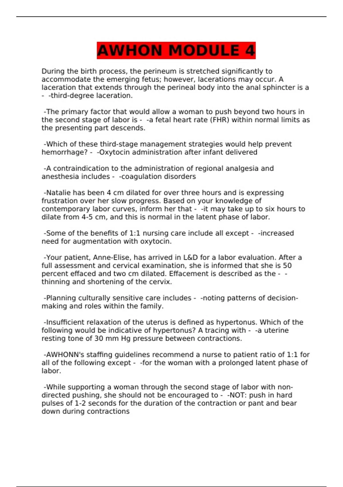 Exam of 2 pages for the course AWHON MODULE 4 at AWHON MODULE 4 (AWHON MODULE 4)