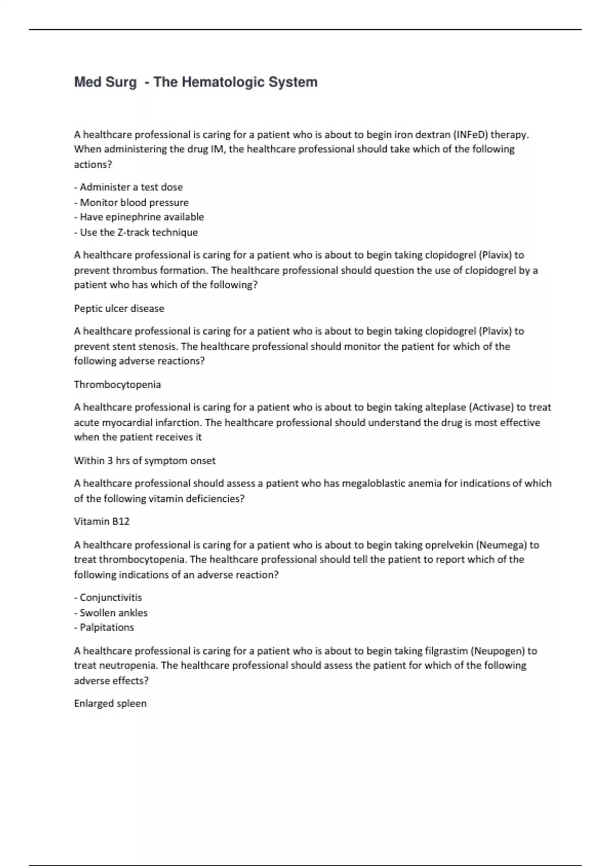 Med Surg - The Hematologic System
