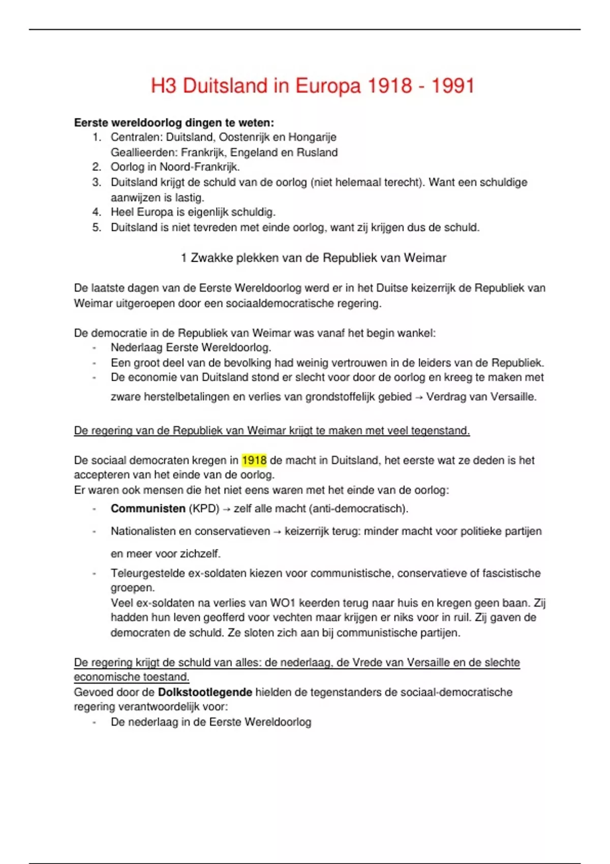 Geschiedenis samenvatting H3 Duitsland in Europa, voor examenjaar 5 havo.