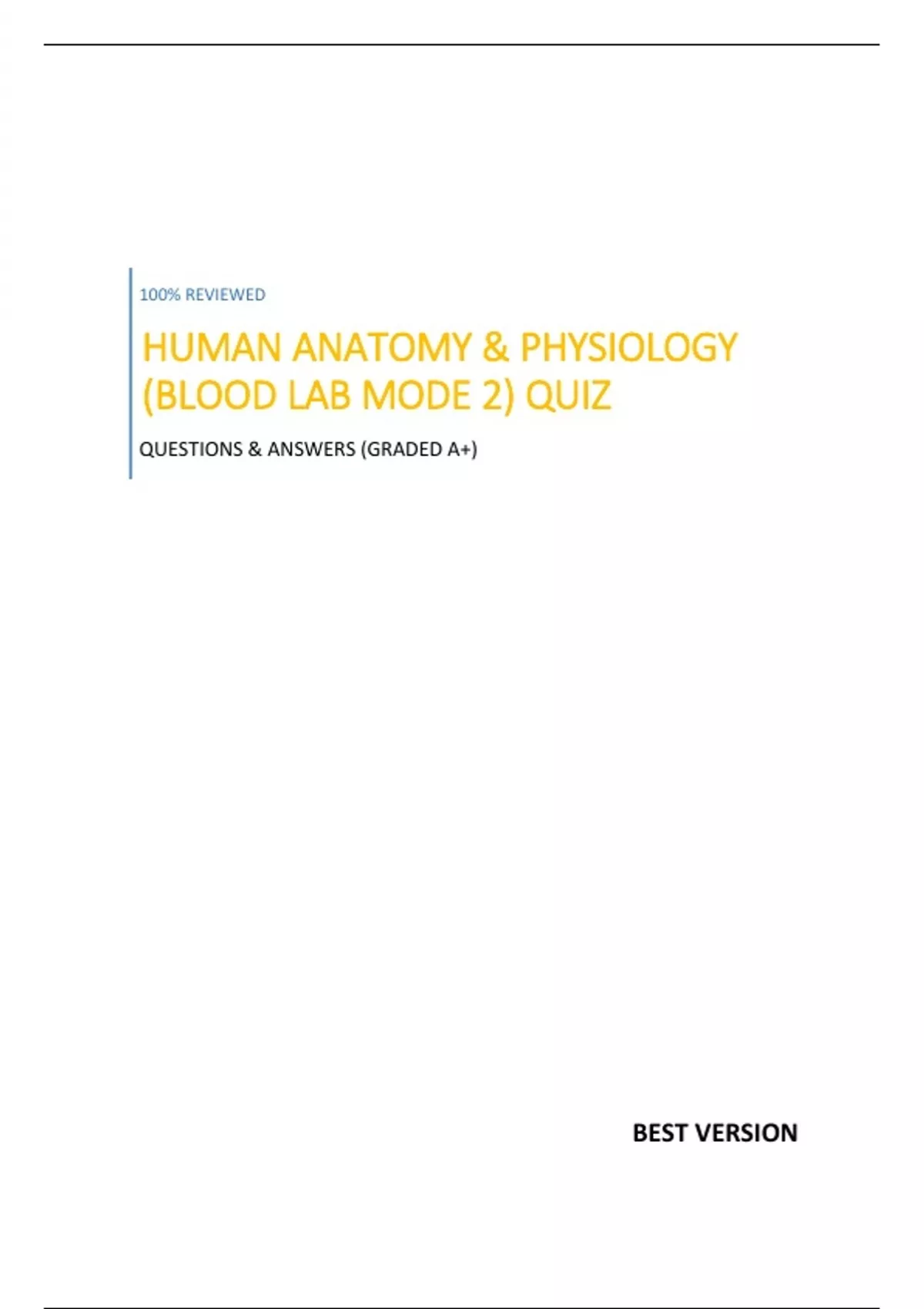 HUMAN ANATOMY & PHYSIOLOGY (BLOOD LAB MODE 2) QUIZ