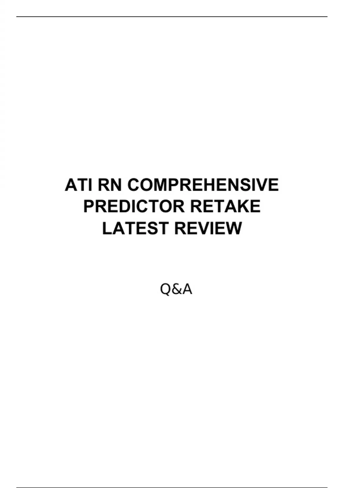 ATI RN COMPREHENSIVE PREDICTOR RETAKE QUESTIONS AND ANSWERS 100% VERIFIED