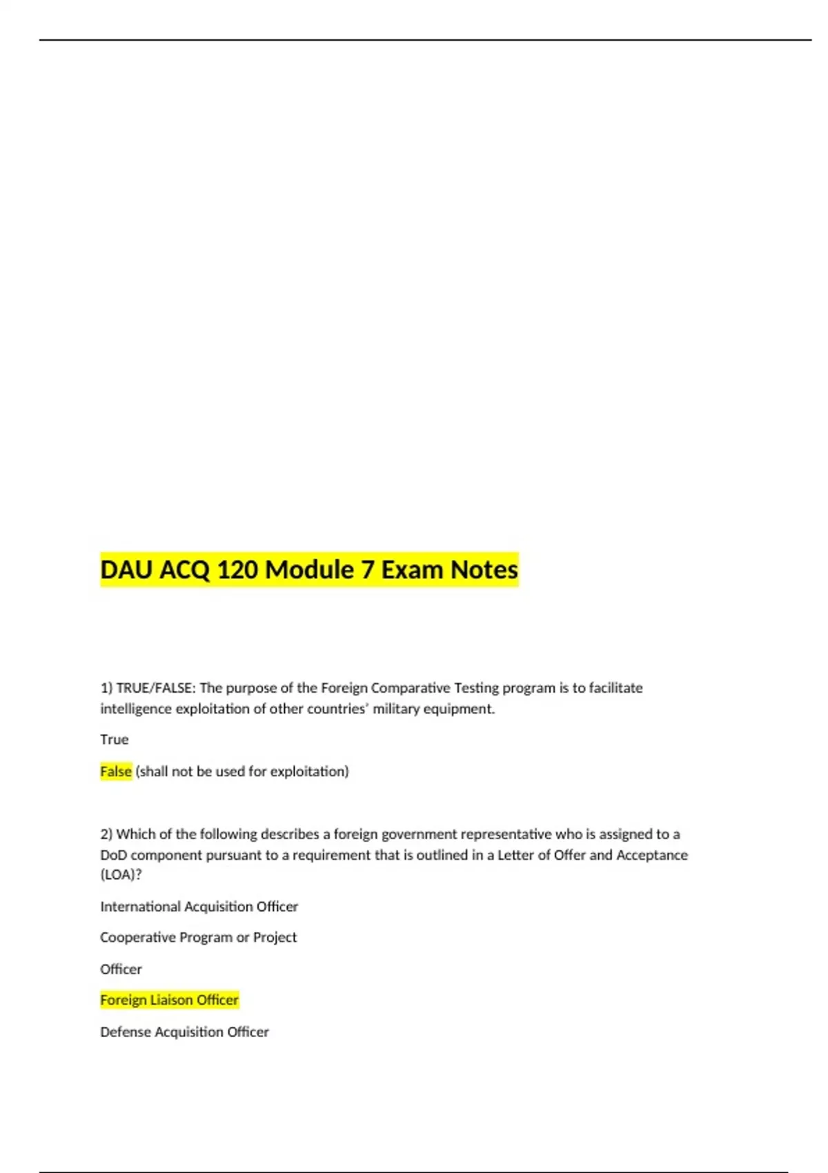 DAU ACQ 120 Module 7 Exam Notes 2023/24