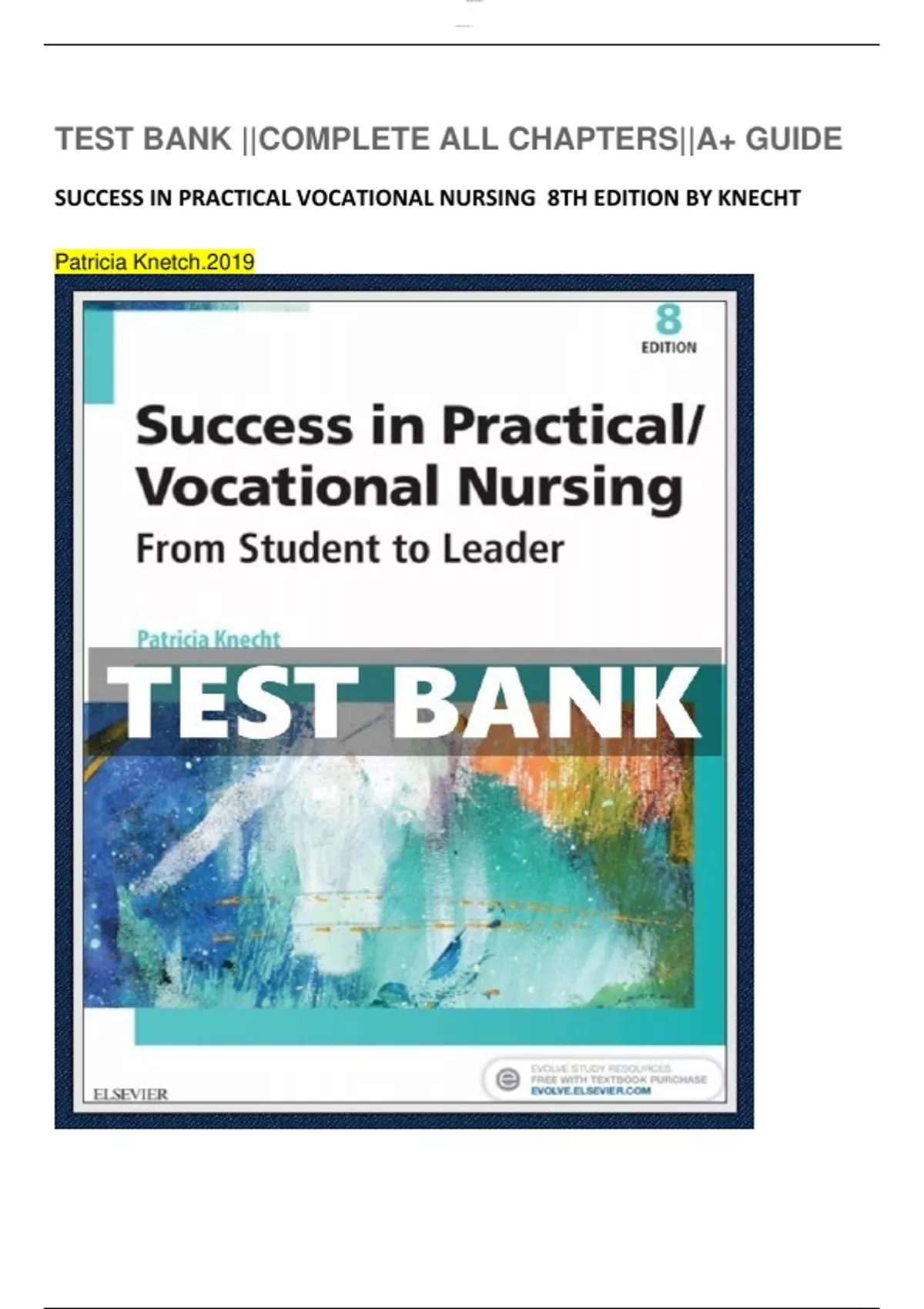 TEST BANK FOR SUCCESS IN PRACTICAL VOCATIONAL NURSING 8TH EDITION BY KNECHT Knecht: Success in Practical/Vocational Nursing, 8th Edition Questions and Answers, With Rationales A+ Rated Solution Guide
