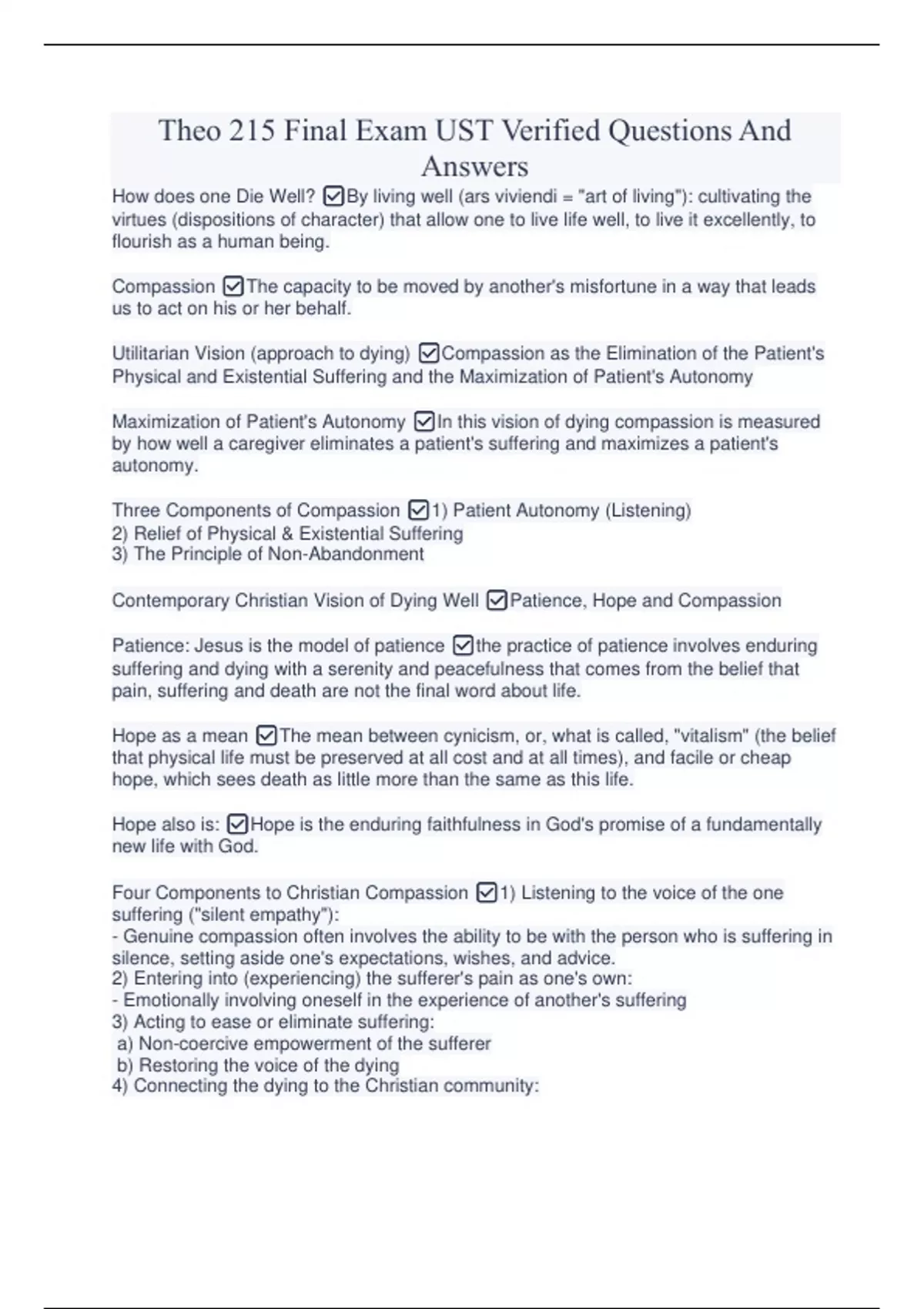 Theo 215 Final Exam UST Verified Questions And Answers