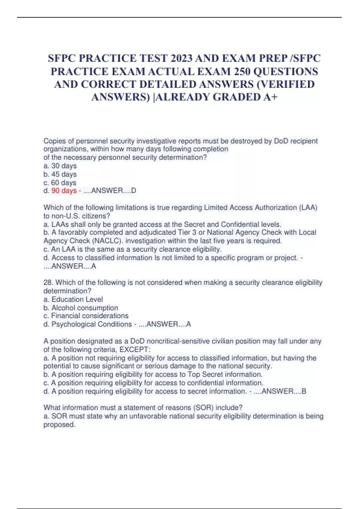 SFPC PRACTICE TEST 2023 AND EXAM PREP /SFPC PRACTICE EXAM ACTUAL EXAM 250 QUESTIONS AND CORRECT DETAILED ANSWERS (VERIFIED ANSWERS) |ALREADY GRADED A+