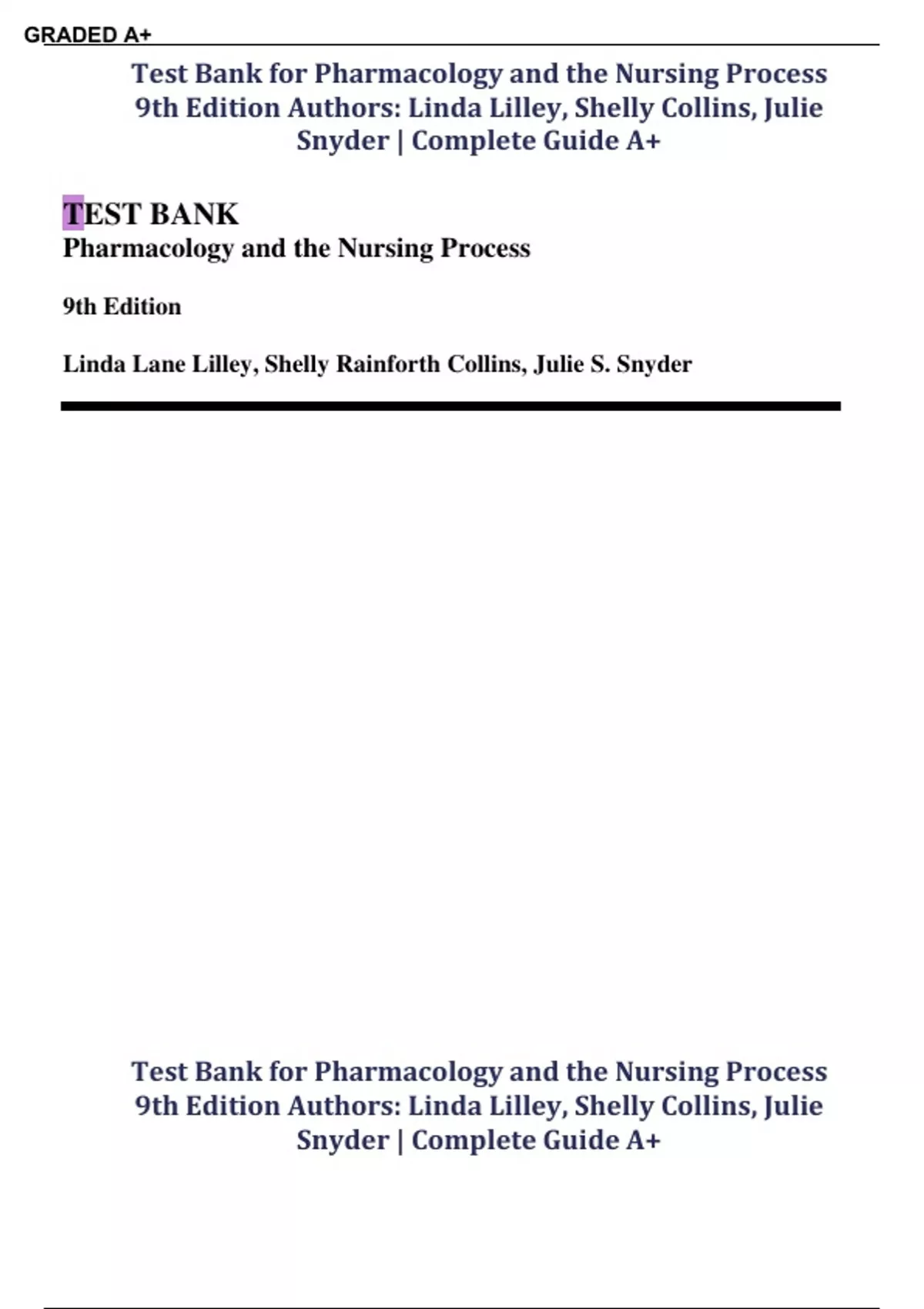 TEST BANK Pharmacology and the Nursing Process 9th Edition Linda Lane Lilley, Shelly Rainforth Collins, Julie S. Snyder _ all chapters 1-58 complete questions, answers, rationales A+ Guide